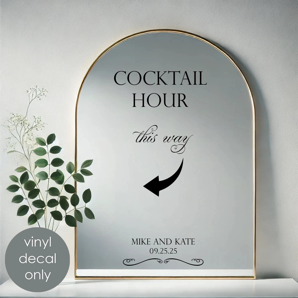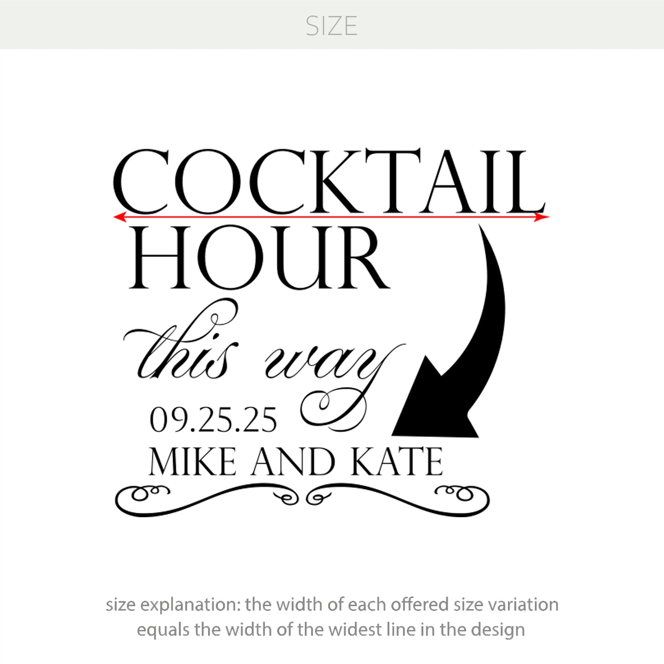 Cocktail Hour This Way Vinyl Decal – Personalized Wedding Reception Decor with Custom Names & Date w71