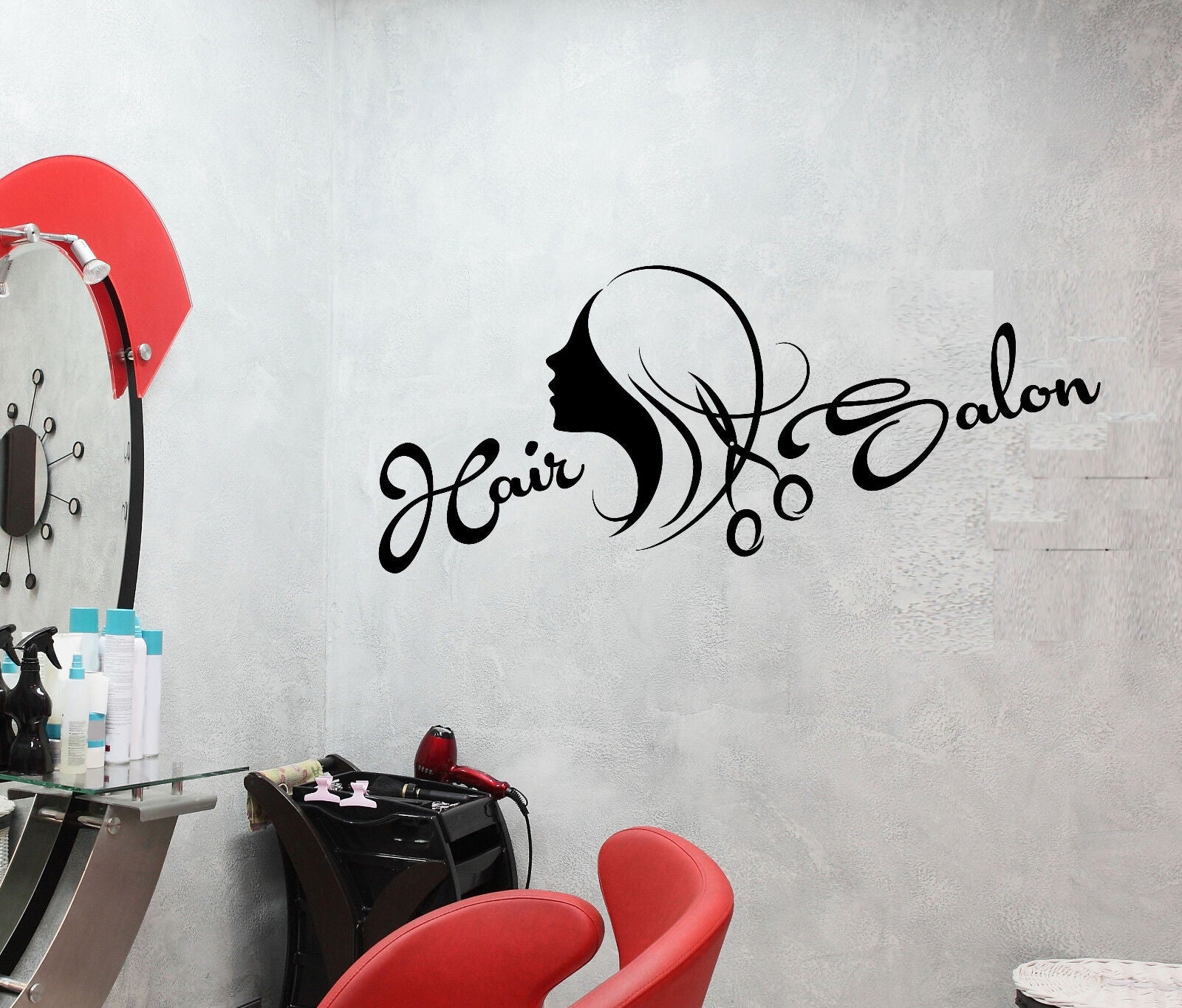 Wandaufkleber mit Friseursalon-Logo, Haarschnitt, Schere, Vinyl, Schild (2343ig)