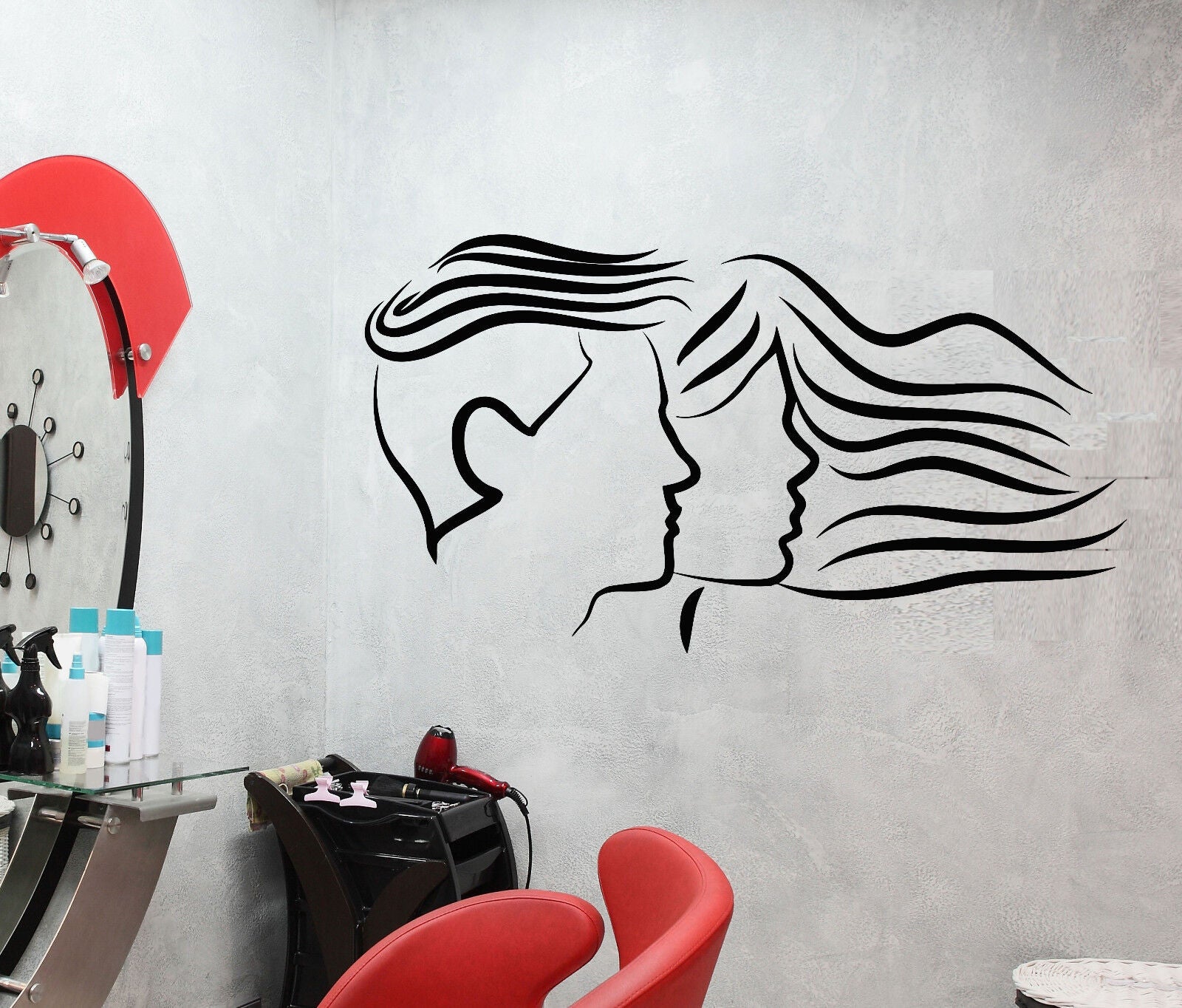 Vinyl Wand Aufkleber Mann Frau Schönheit Haar Salon Barbershop Aufkleber (1353ig)