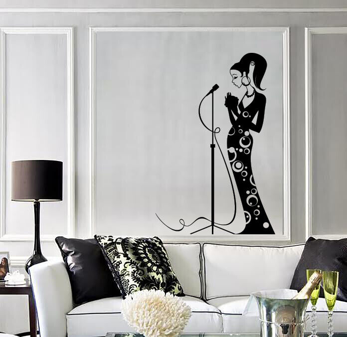 Wandaufkleber aus Vinyl, Motiv: Dame, schlanke Figur, Frau, Sängerin, Liebeslied, Jazz (n1673)