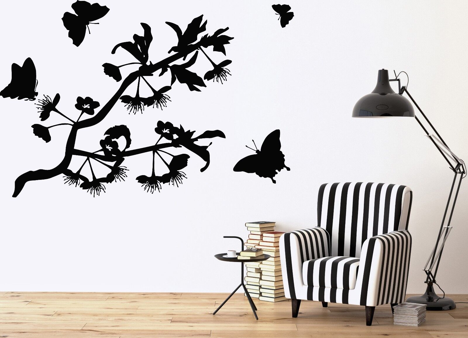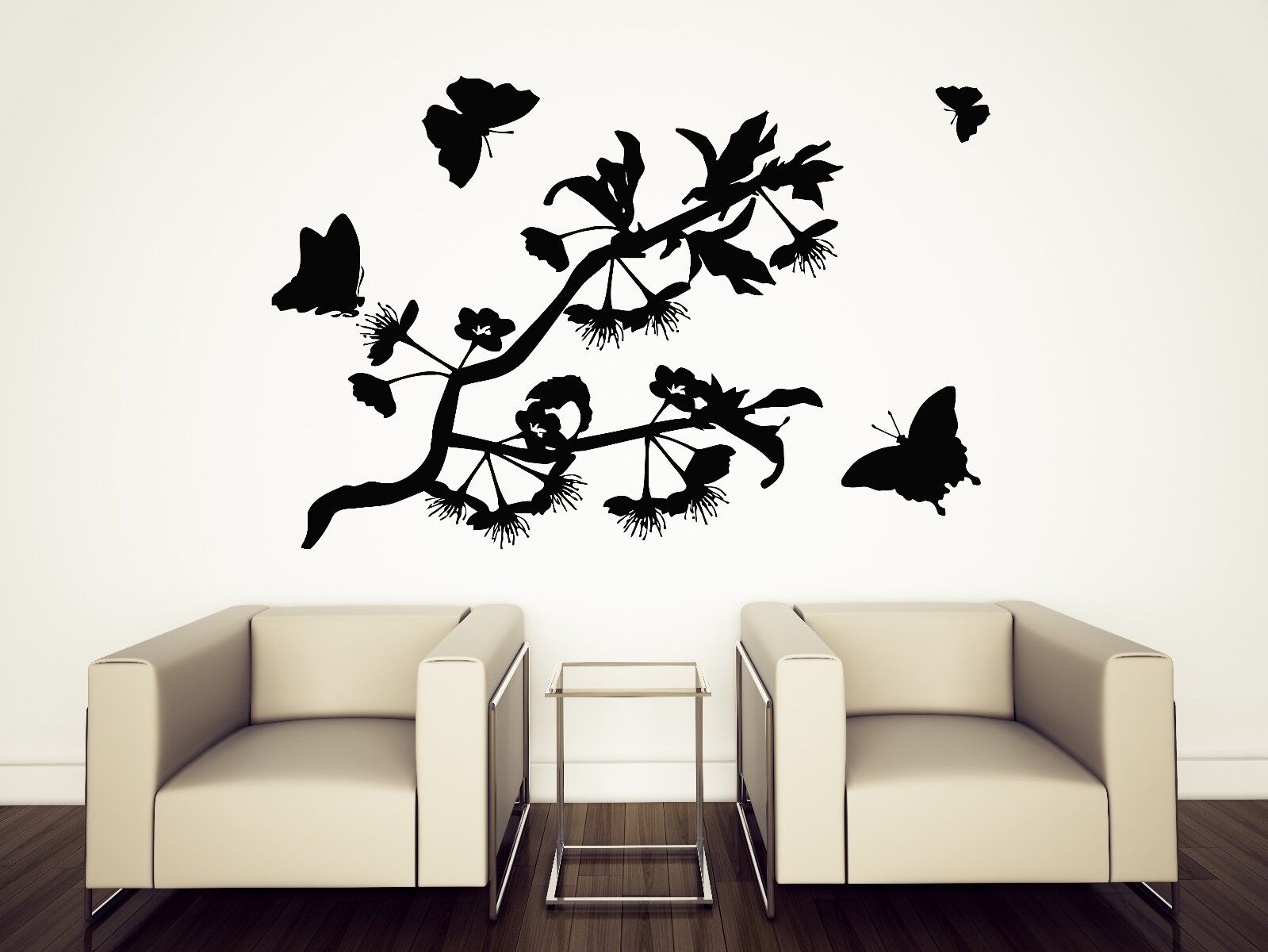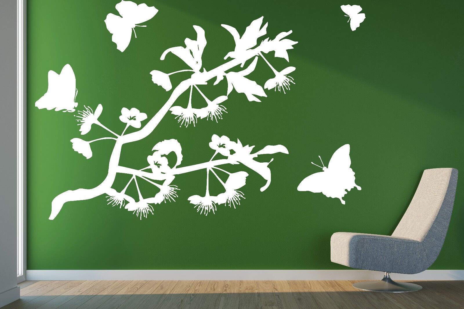 Wandaufkleber, Vinyl, Schmetterlinge, flattern, herrlich duftende Blumen (n101)