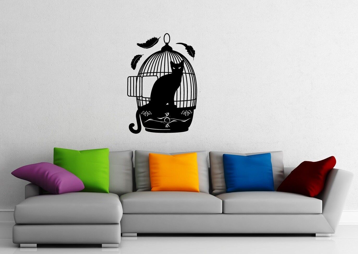 Wandaufkleber, Vinyl, Katze, Jagd, Tierkäfig (ig1167)