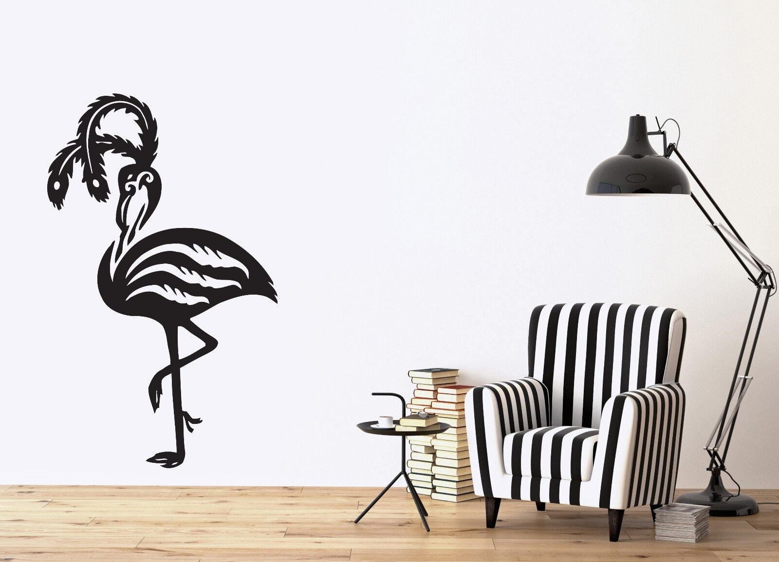 Wandaufkleber, rosa Flamingo, Vogel, erstaunlich lange Beine, Bild, Vinyl-Dekor (n385)