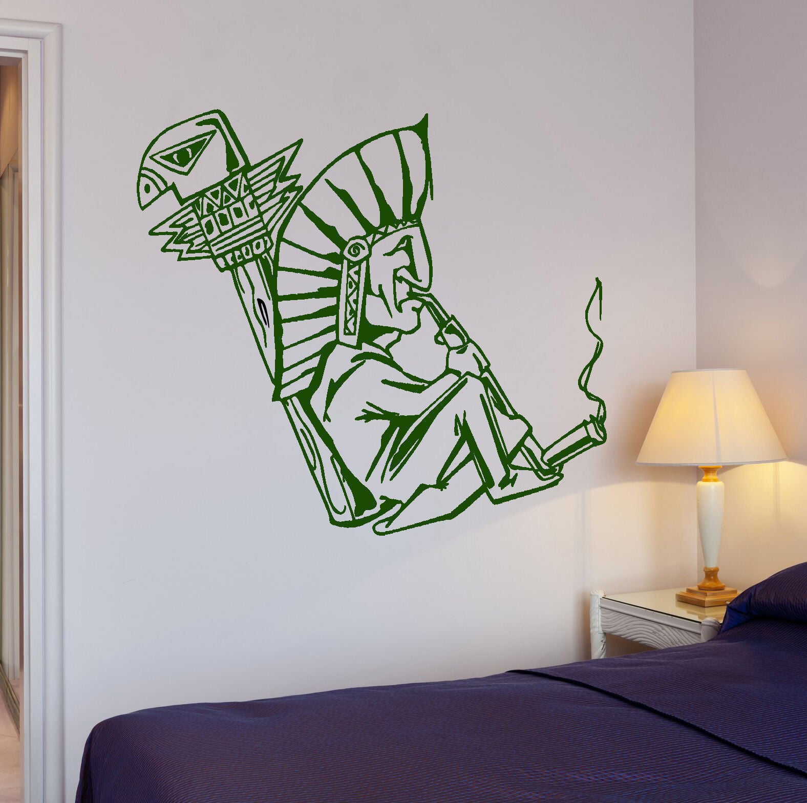 Wandaufkleber „Shaman Smokes Marijuana Weed“, Hippie-Kunst, Vinyl-Aufkleber (ig2020)