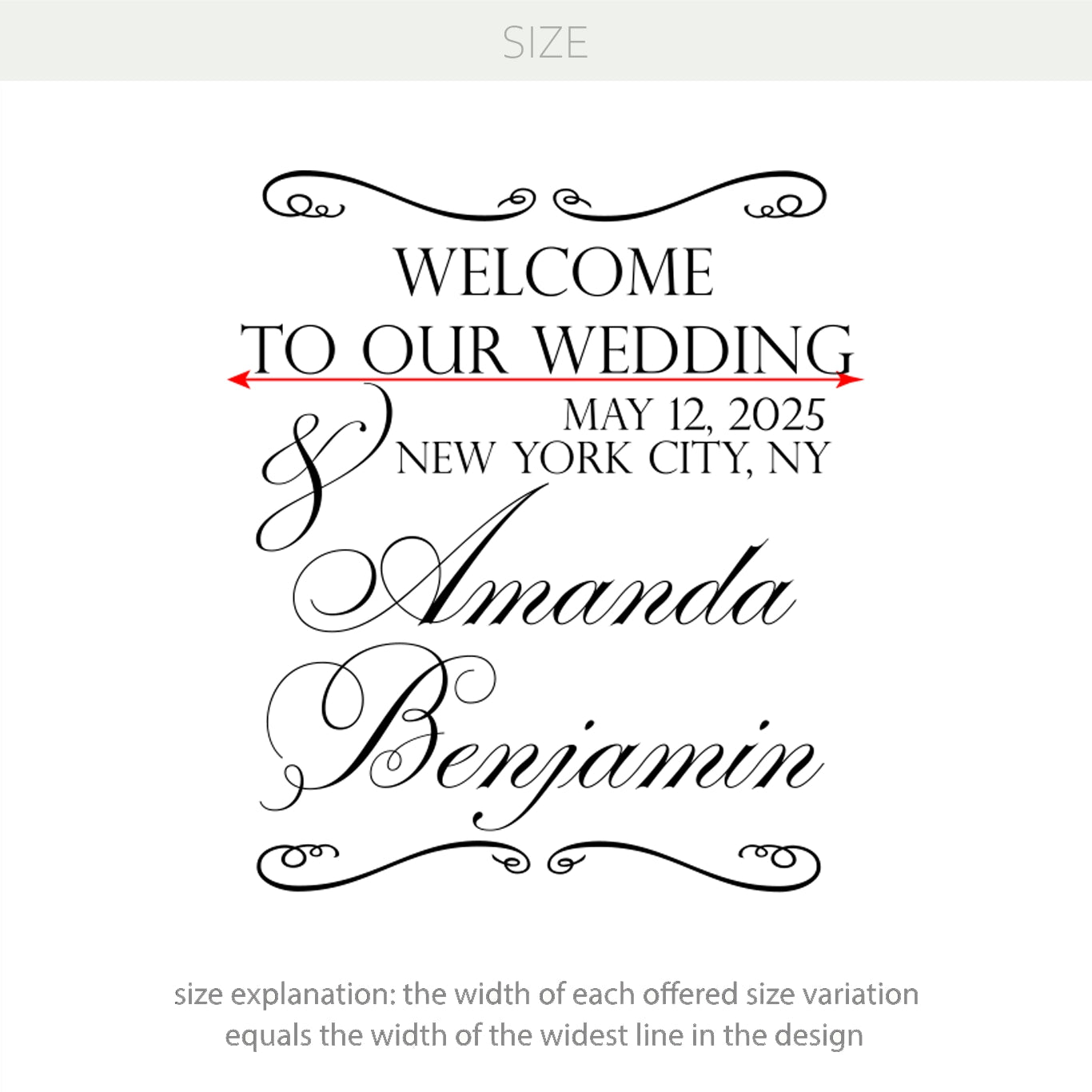 💍 Welcome your guests in style with this elegant "Welcome to Our Wedding" personalized vinyl decal! Featuring your custom names, wedding date, and location, this peel-and-stick vinyl decal is perfect for wedding welcome signs, ceremony entrances, reception decor, and photo booth backdrops. Whether your wedding theme is rustic, modern, boho, floral, or classic, this decal adds a sophisticated and personal touch to your special day.