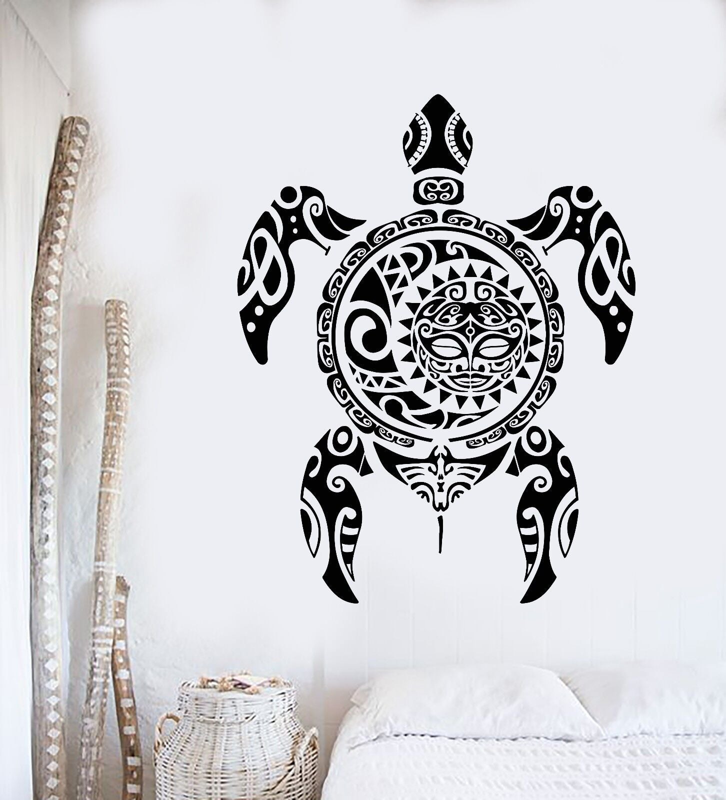 Autocollant mural en vinyle, tortue de mer, Animal ethnique, Style marin, autocollants océan (1111ig)
