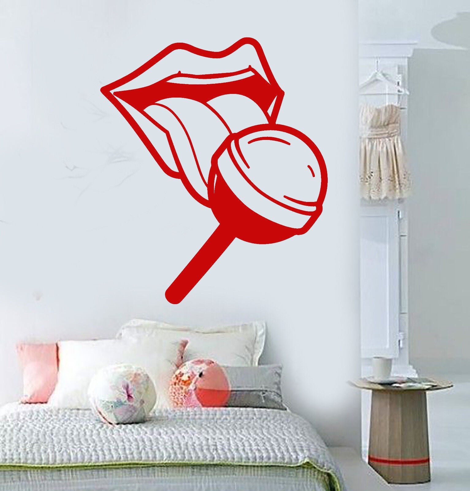 Autocollant mural en vinyle, 2169ig, lèvres de fille chaude, langue, bonbons, sucette, bouche