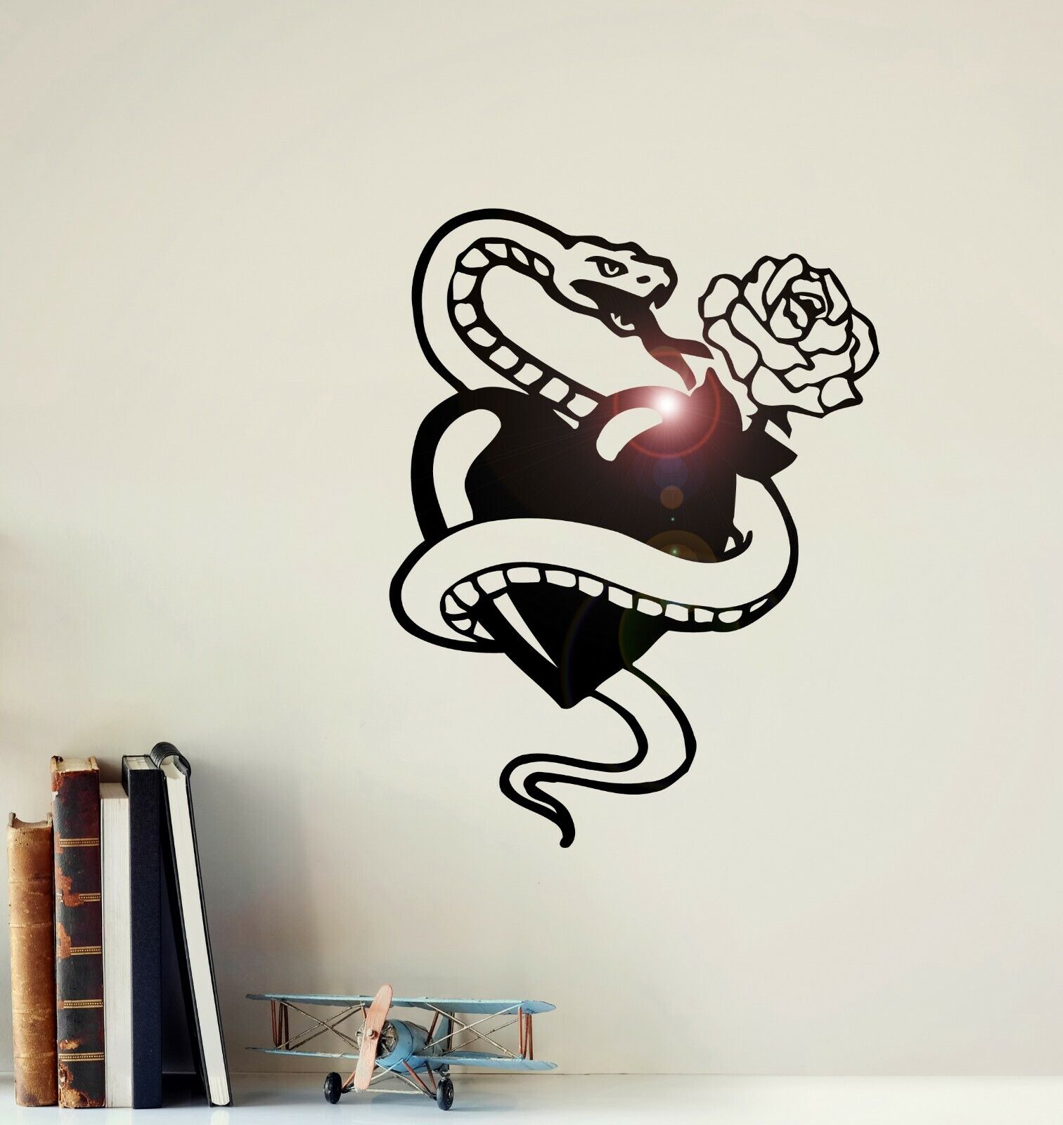Autocollant Mural en vinyle serpent Rose tatouage amour coeur décoration de chambre autocollants muraux (ig1671)