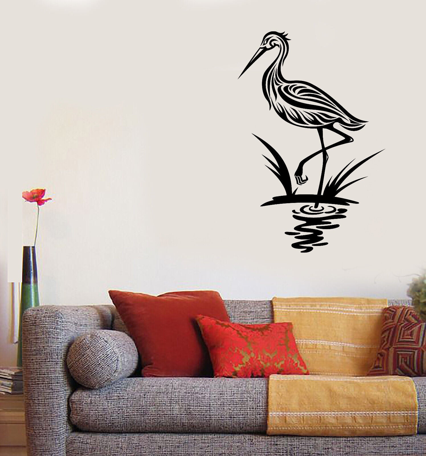 Autocollant mural en vinyle, oiseau héron, bec rapide, roseaux, marais (n1880)