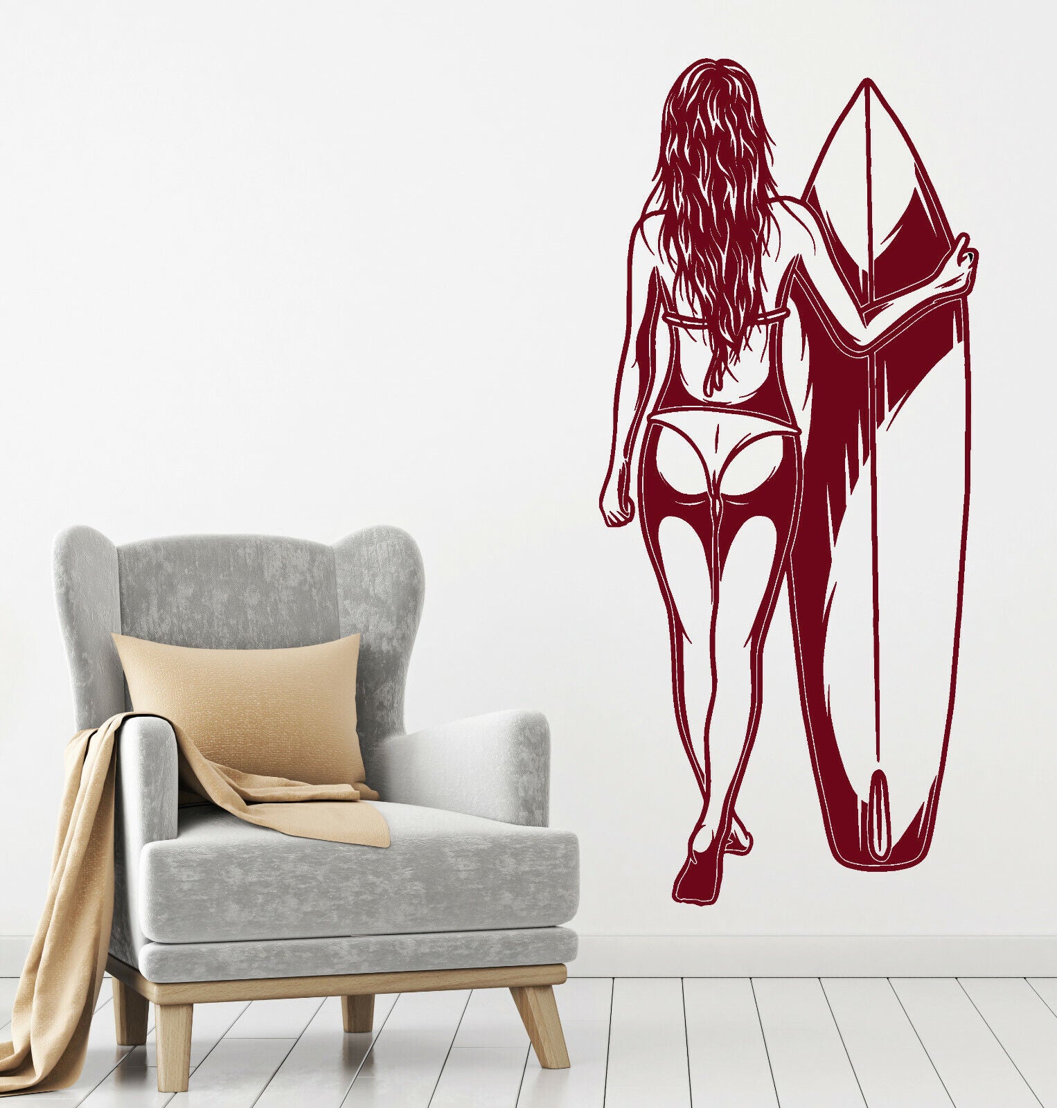 Autocollant mural en vinyle surfeur fille nue sexy en maillot de bain autocollants de planche de surf (4268ig)