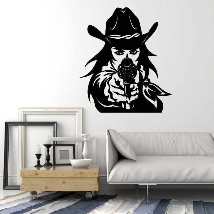 Autocollant mural en vinyle, chapeau de Cowboy occidental, pistolet Revolver, autocollants de Cowgirl (2315ig)