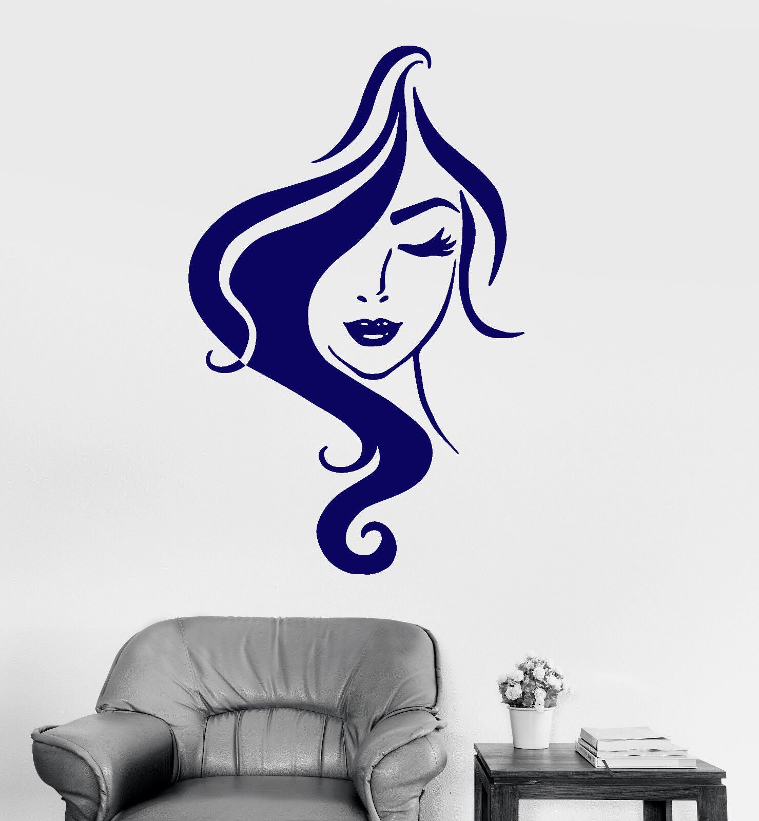 Autocollant mural en vinyle pour femme, beau visage, fille, lèvres sexy, coiffure (1928ig)
