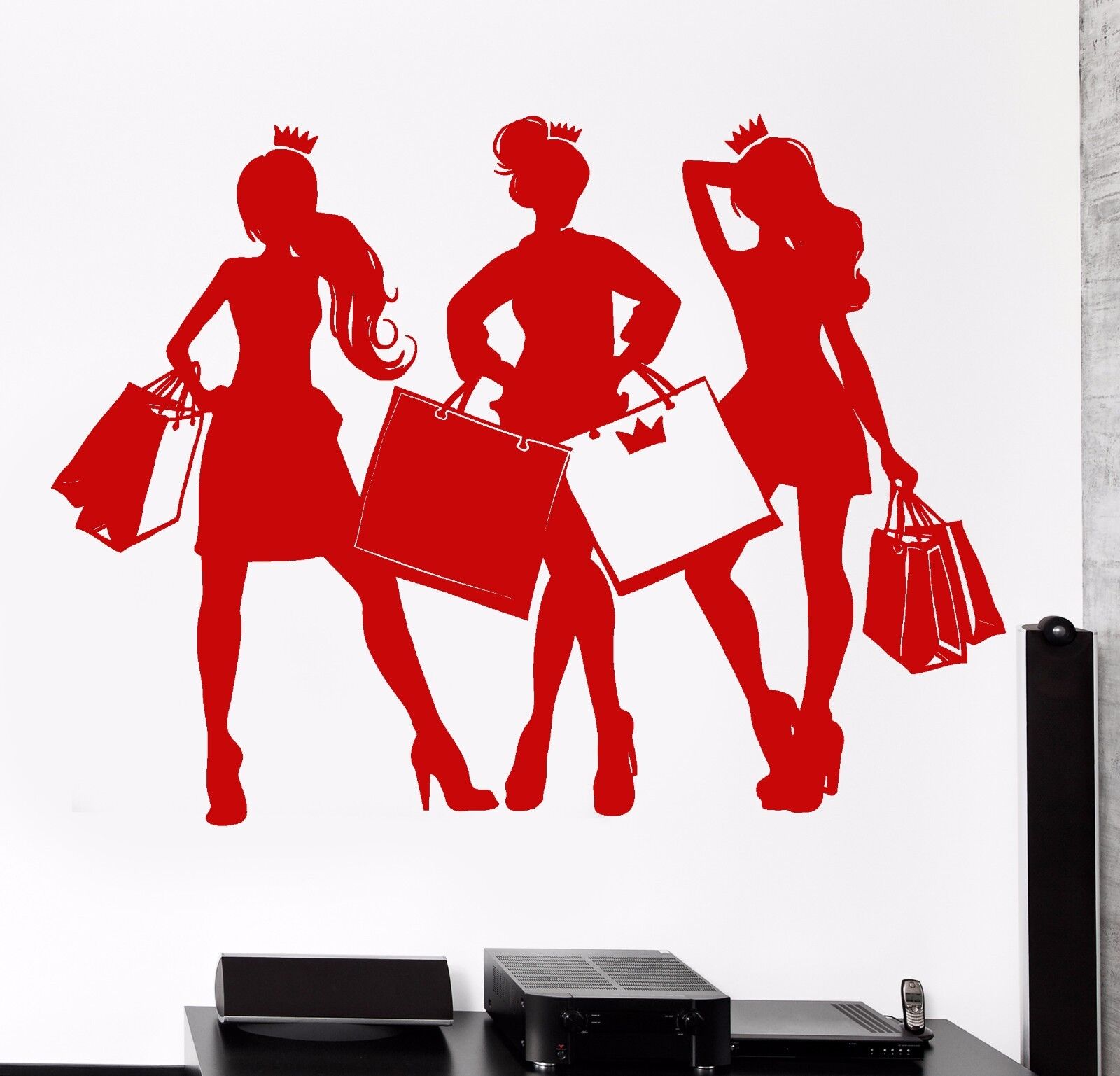 Autocollant mural en vinyle pour femmes, Shopping, vente à prix réduits, autocollants de mode pour filles (892ig)