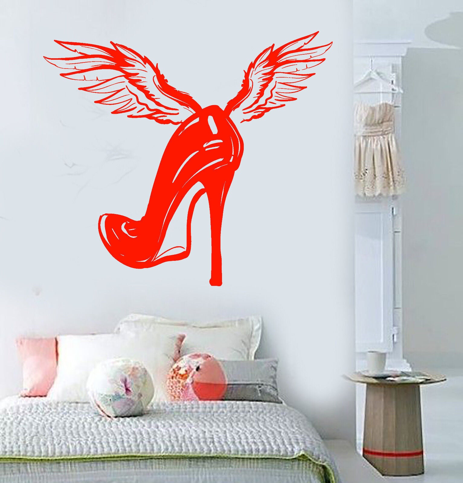 Autocollant mural en vinyle, ailes de chaussures pour femmes, autocollants de décoration de salle de mode (1372ig)