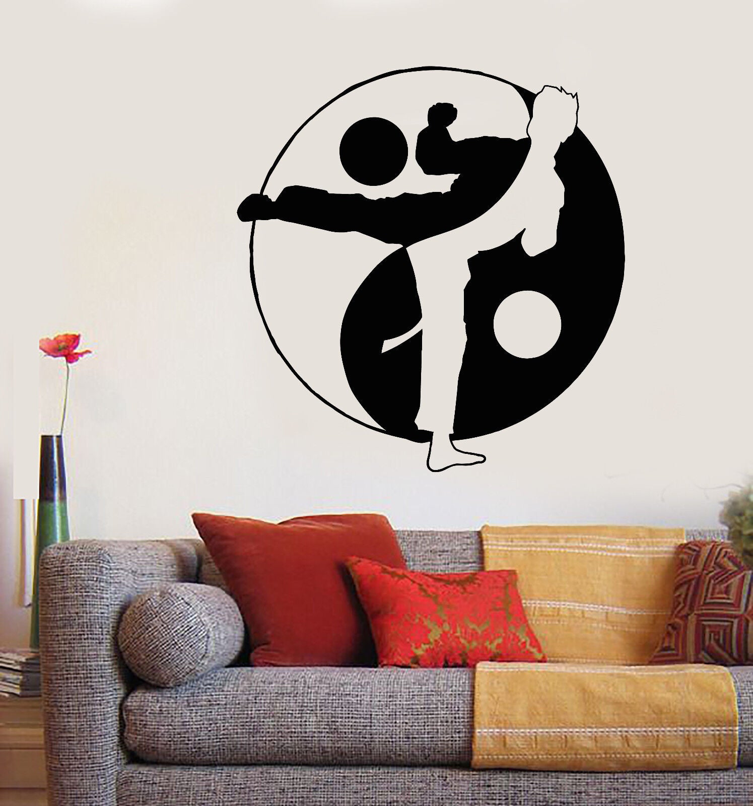 Autocollant mural en vinyle, symbole Yin Yan, guerrier, karaté, Arts martiaux, autocollants (1698ig)