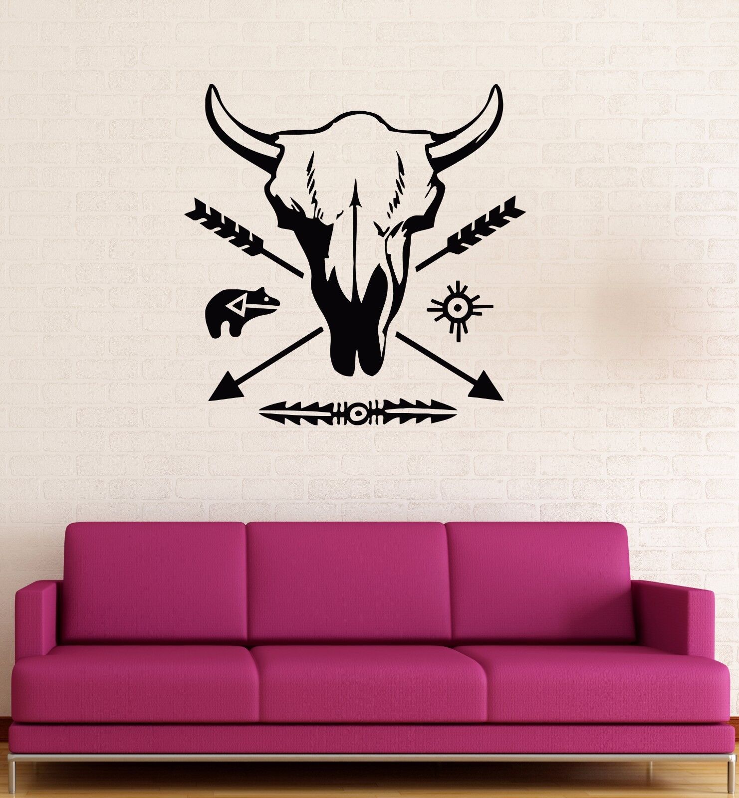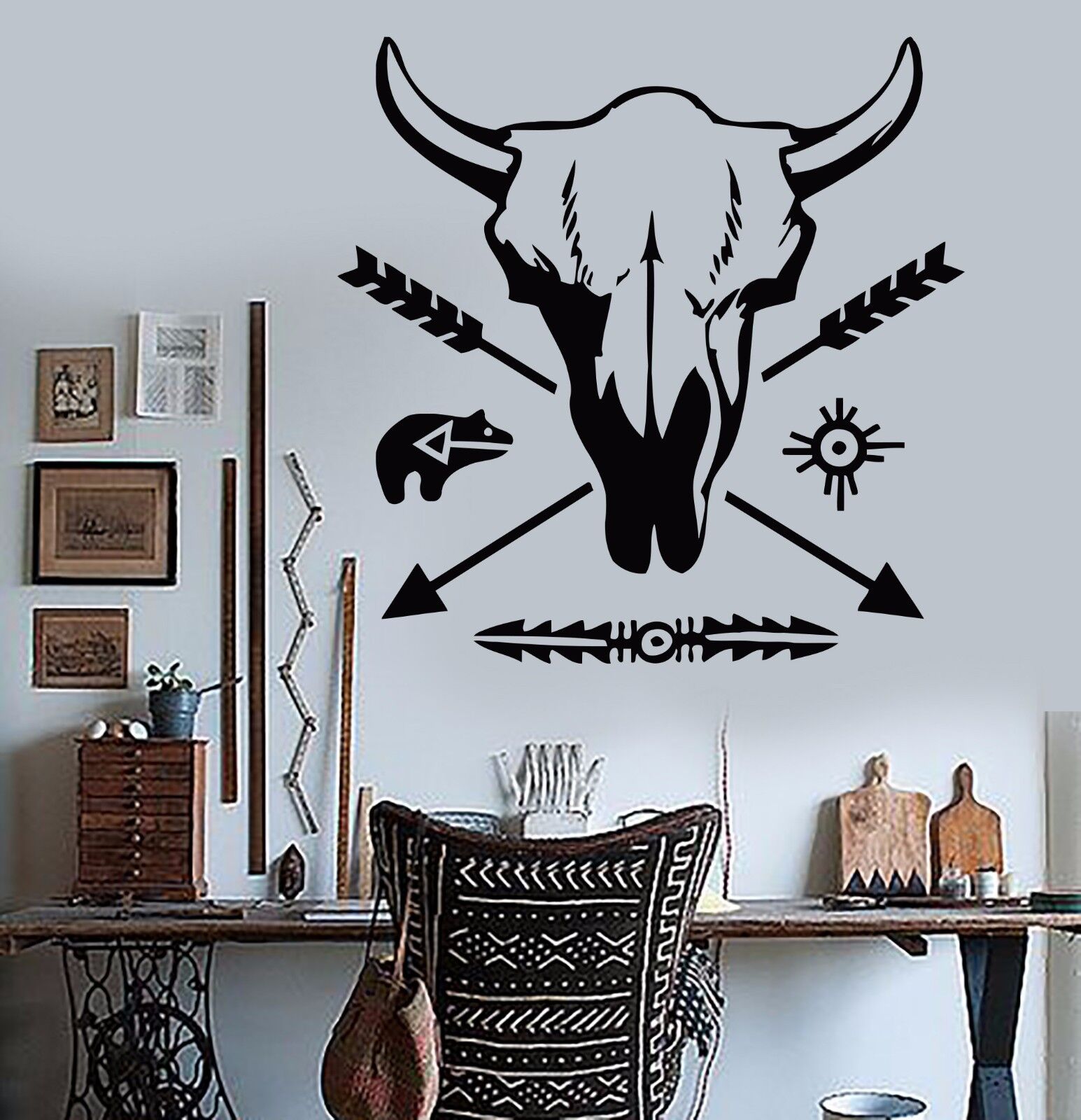 Autocollants muraux en vinyle, décor ethnique, motif de taureau, crâne, flèche, décalcomanie murale (176ig)