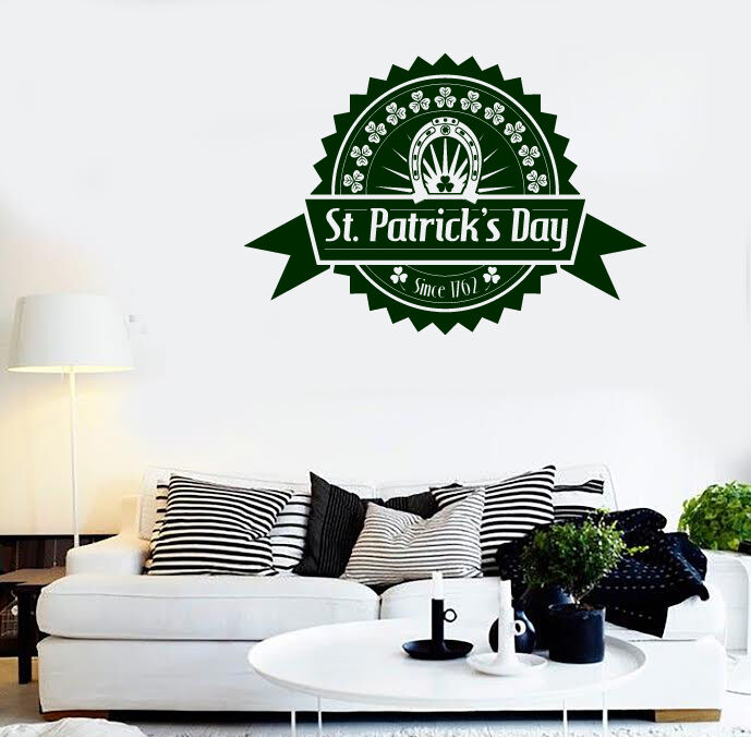 Autocollants muraux en vinyle sur le lettrage et les timbres de la Saint-Patrick (n673)