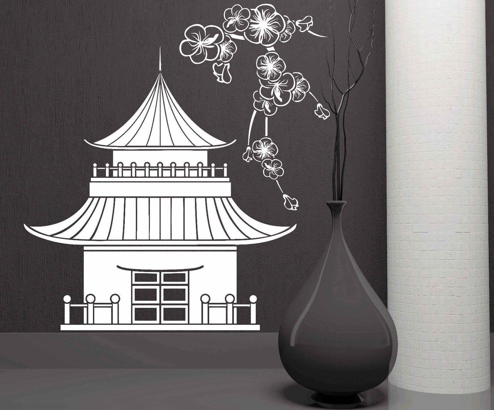 Autocollants muraux en vinyle pagode japon japonais Sakura, décalcomanie d'art asiatique (210ig)