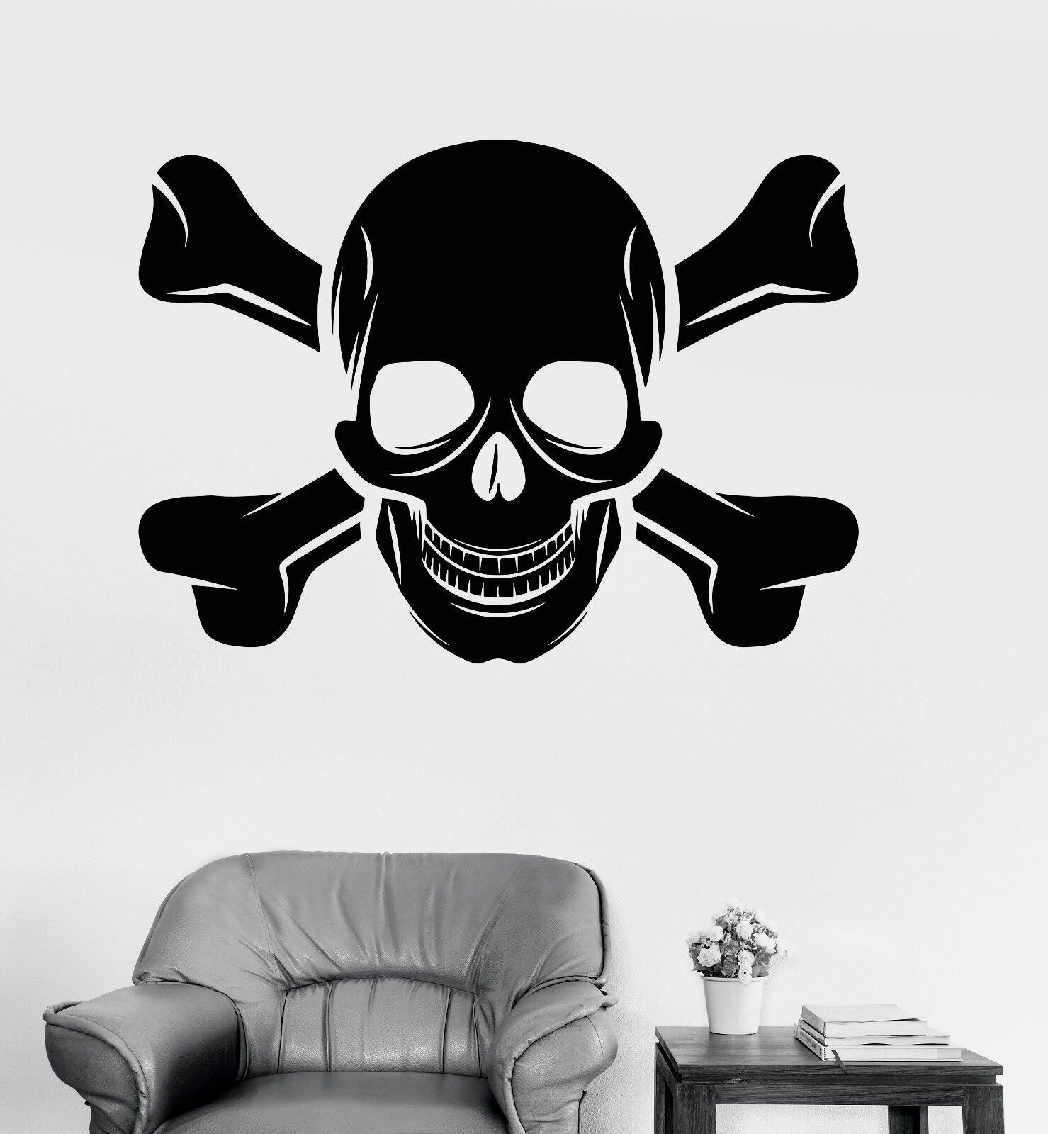 Autocollants muraux en vinyle crâne et os de pirate, autocollant de mort Jolly Roger (298ig)
