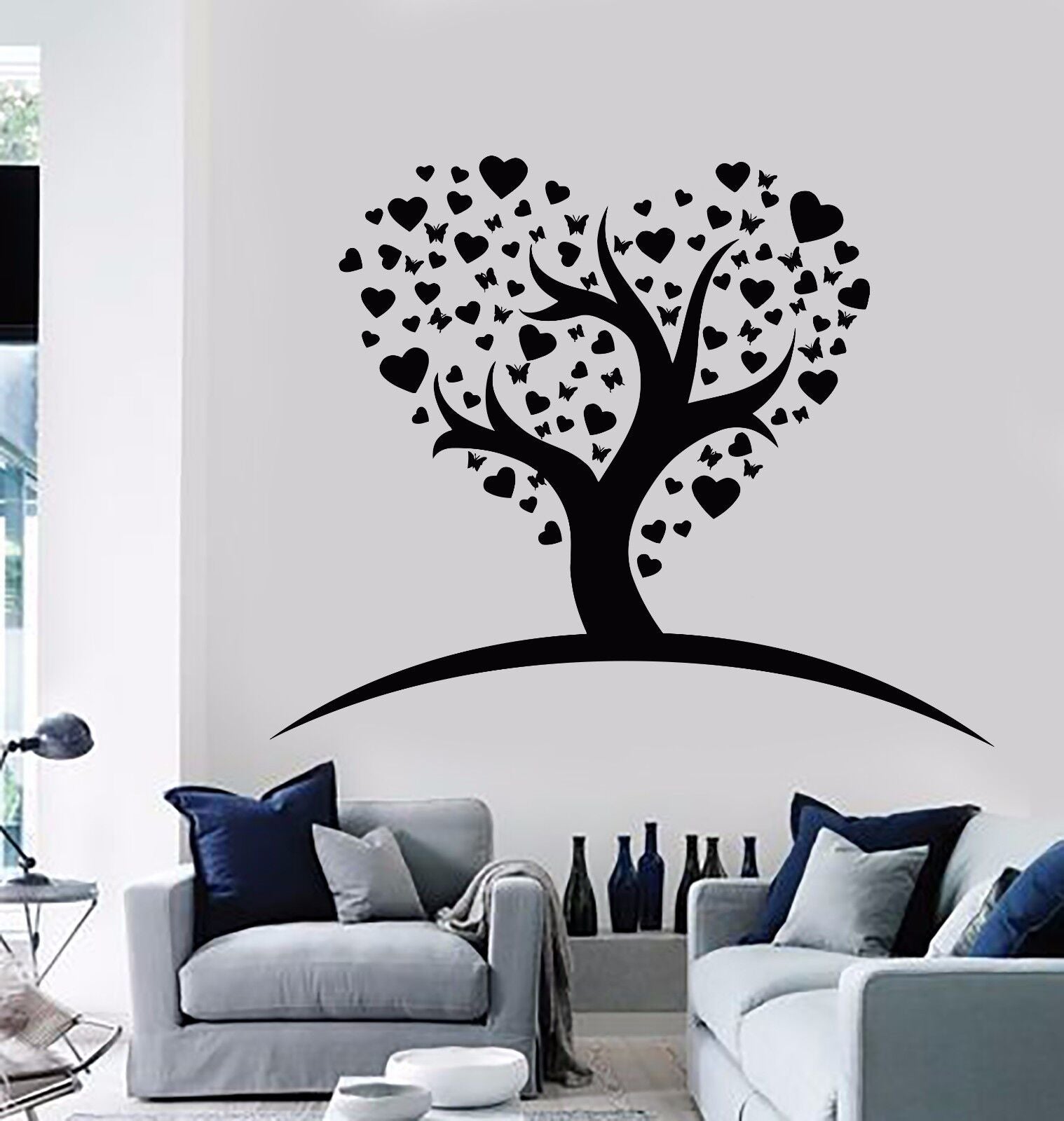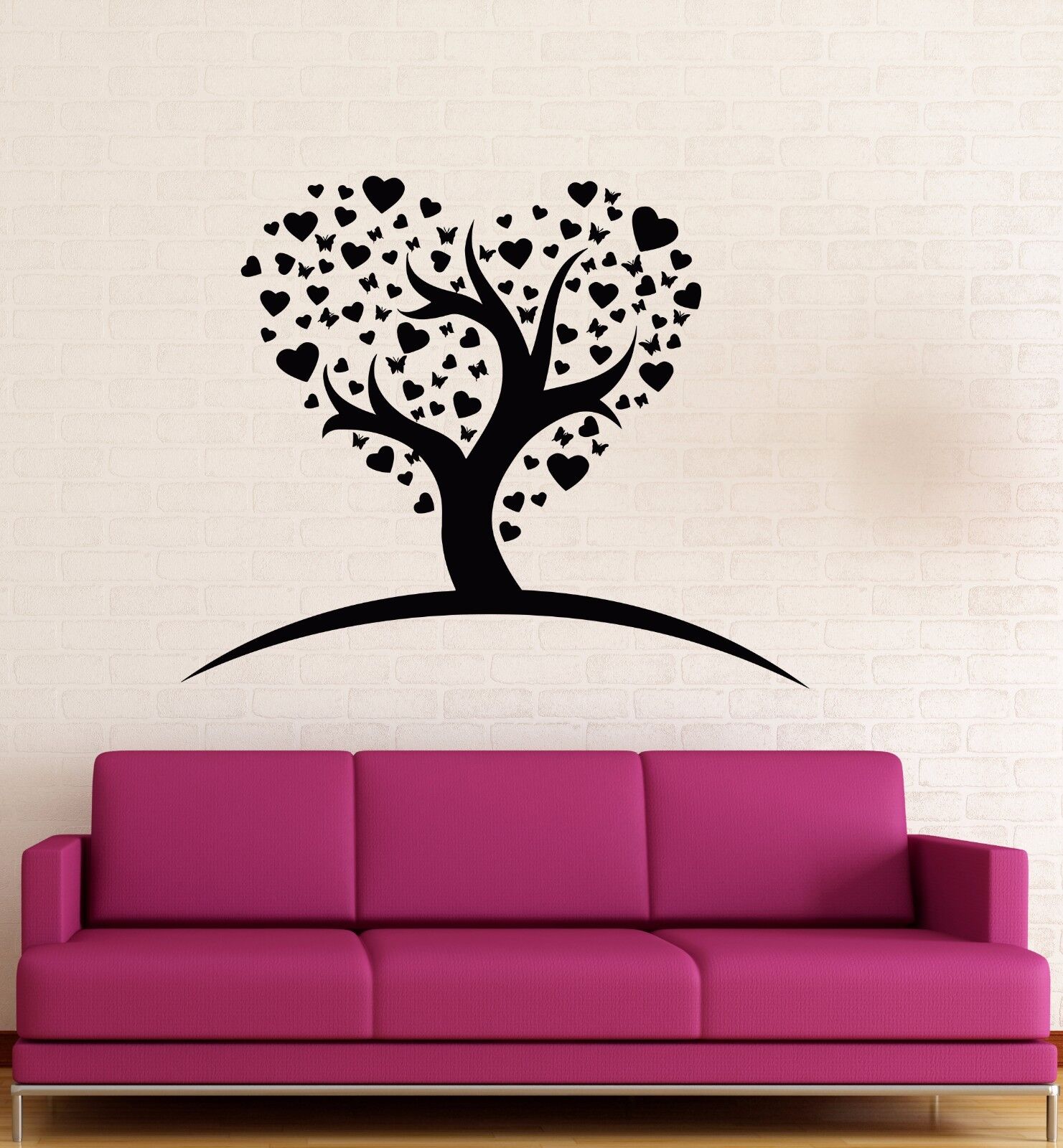 Autocollants muraux en vinyle, décor d'arbre d'amour romantique, fresque de chambre de fille (168ig)