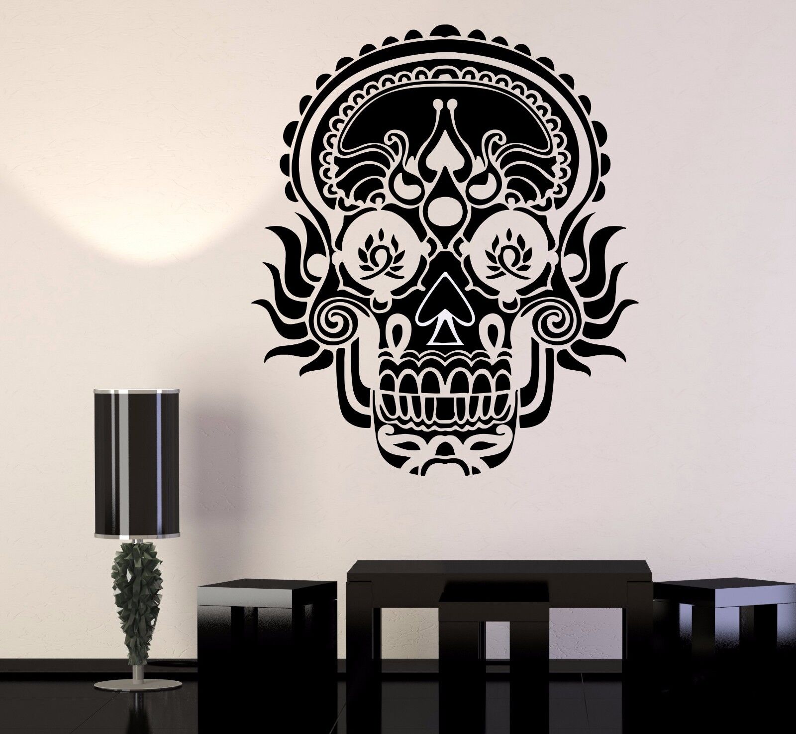 Autocollants muraux en vinyle crâne mort horreur décoration ornement mural (164ig)