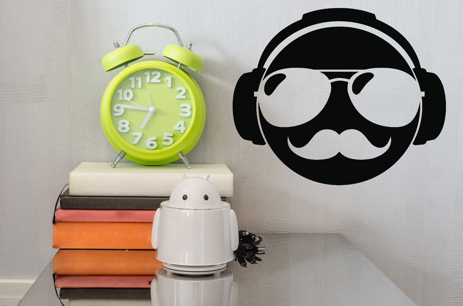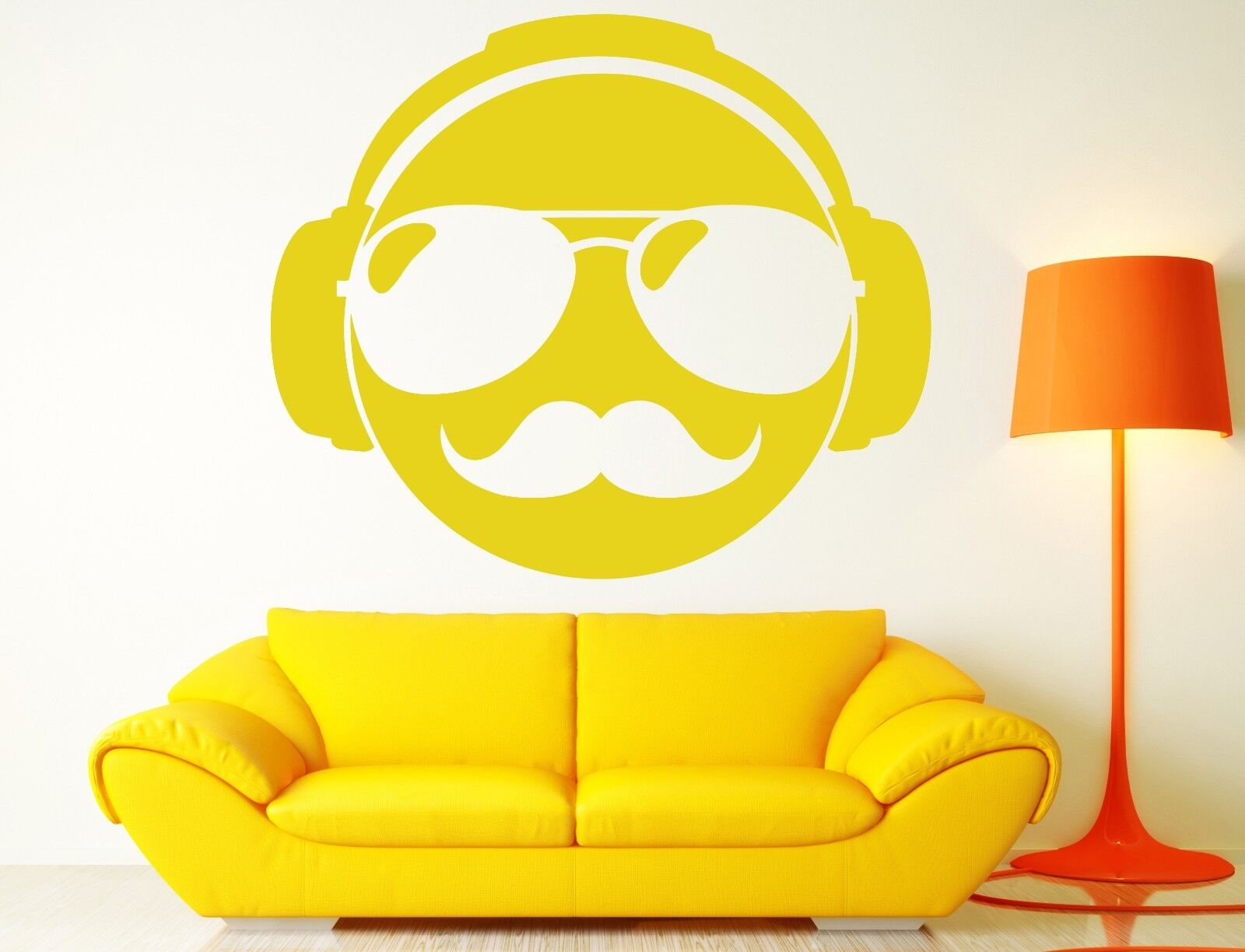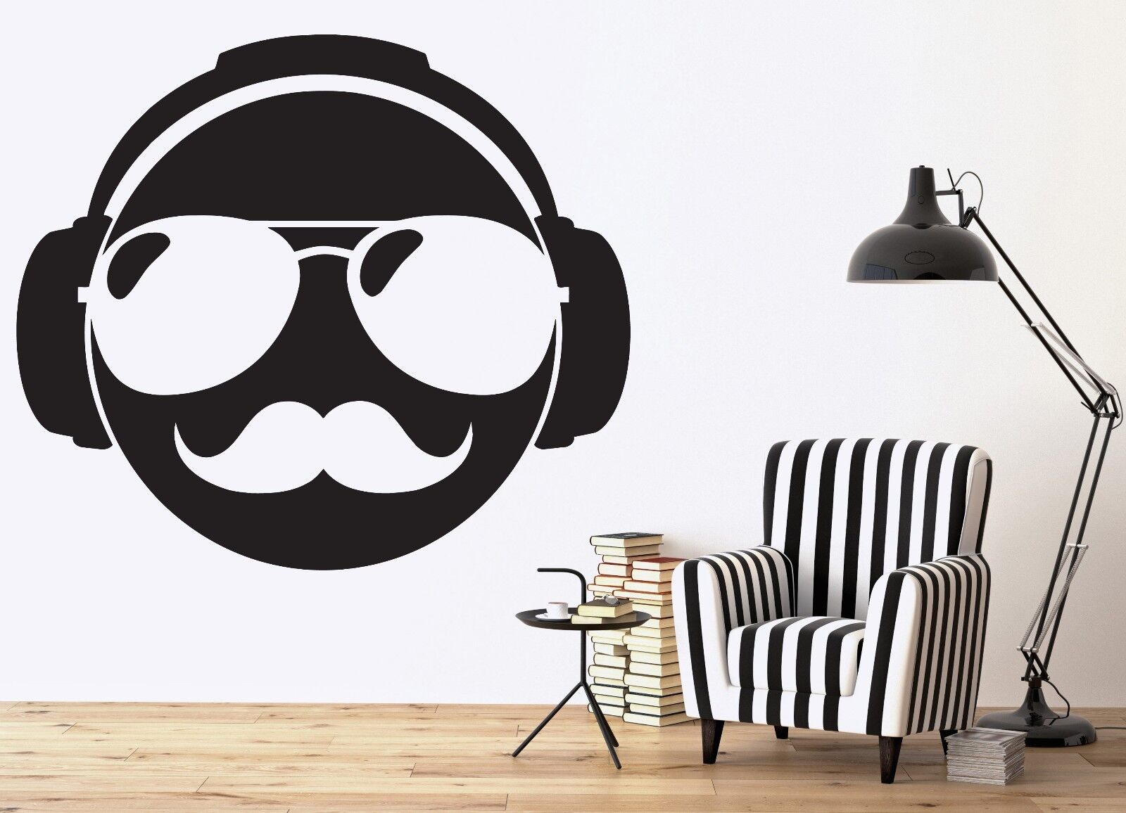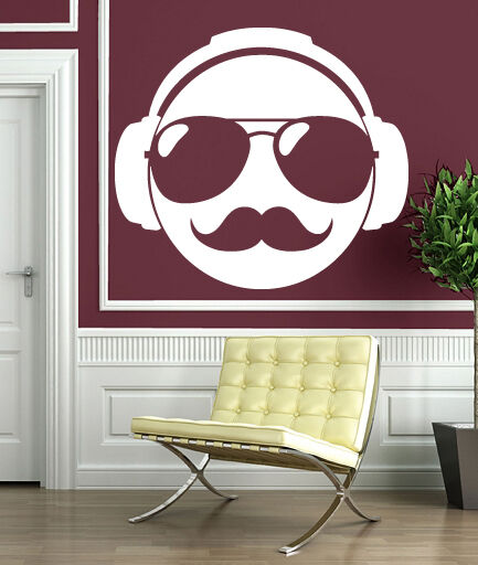 Autocollant mural en vinyle, lunettes moustache, pilotes, casque DJ (n291)