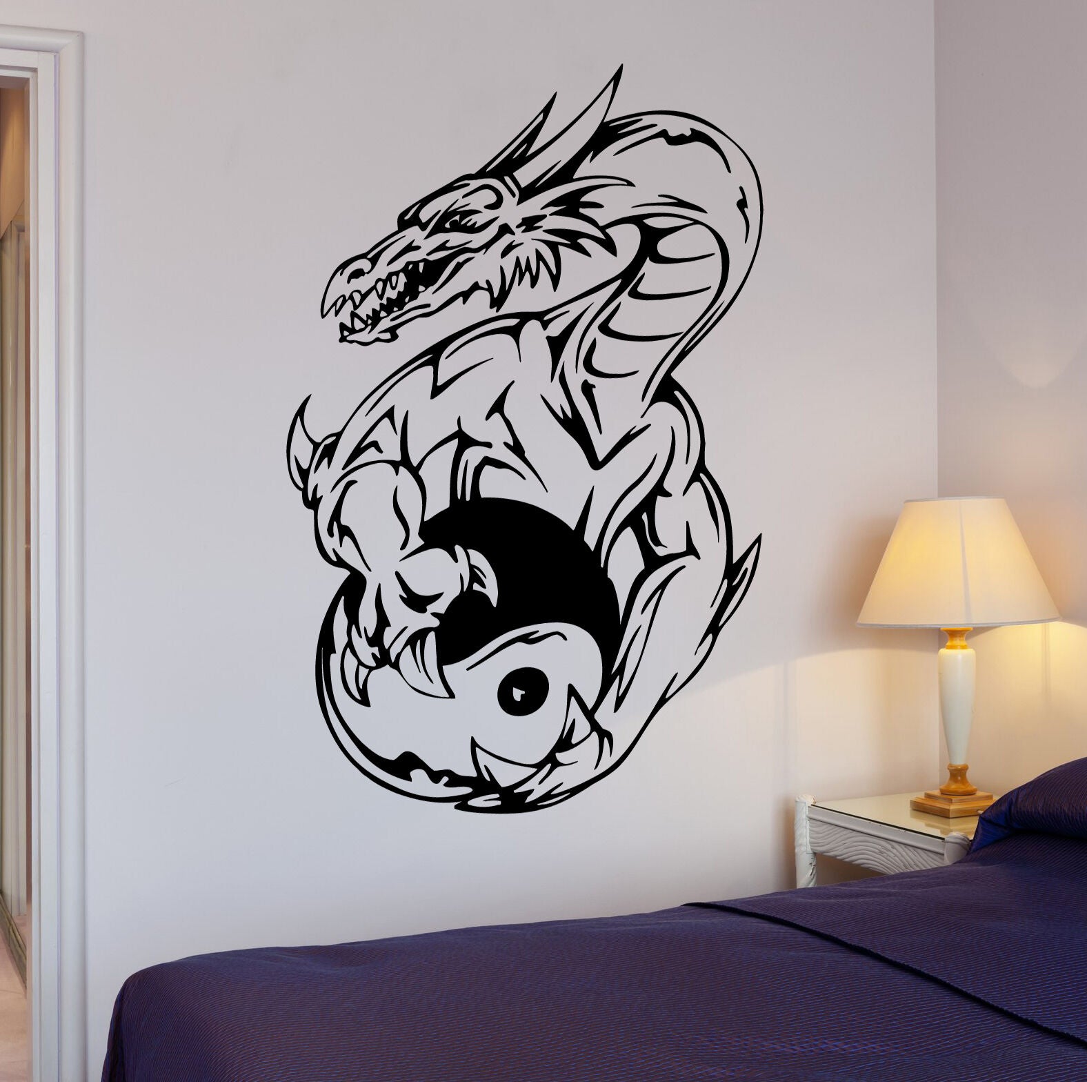 Autocollant Mural fantaisie Dragon Yin Yang, autocollant Mural en vinyle pour chambre d'enfants (ig1938)