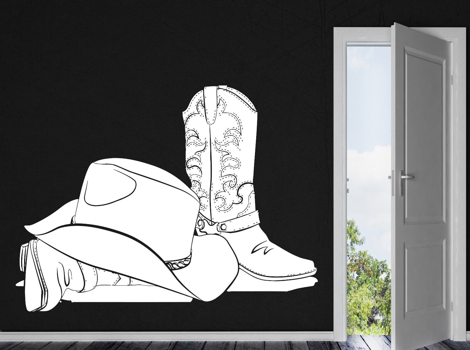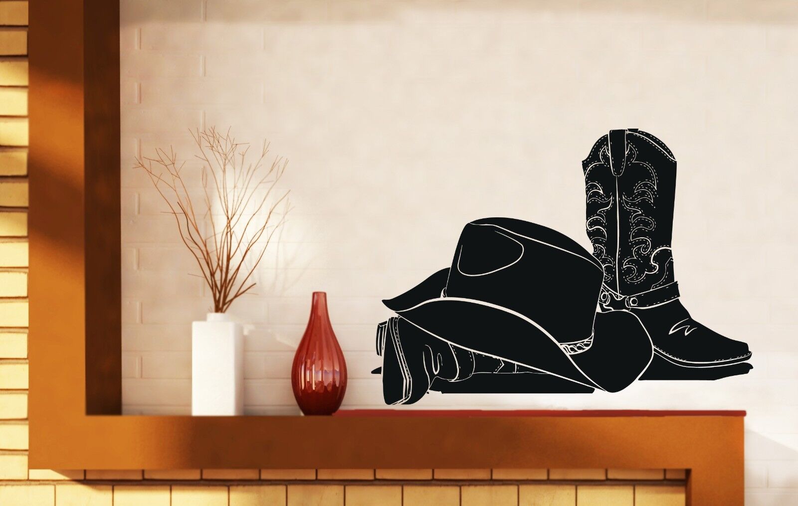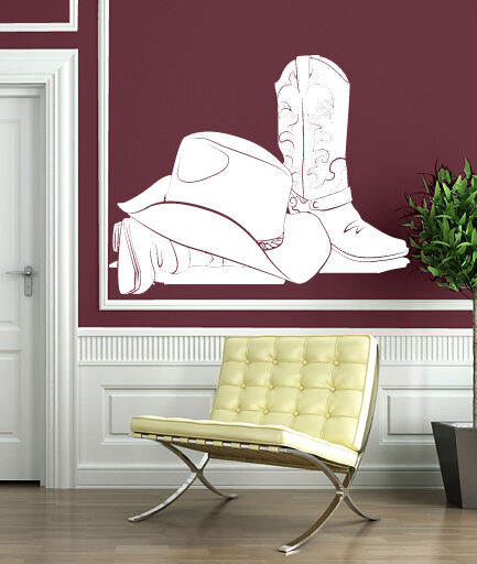 Autocollant mural en vinyle, attributs, chapeau de Cowboy, bottes en cuir Stetson (n414)