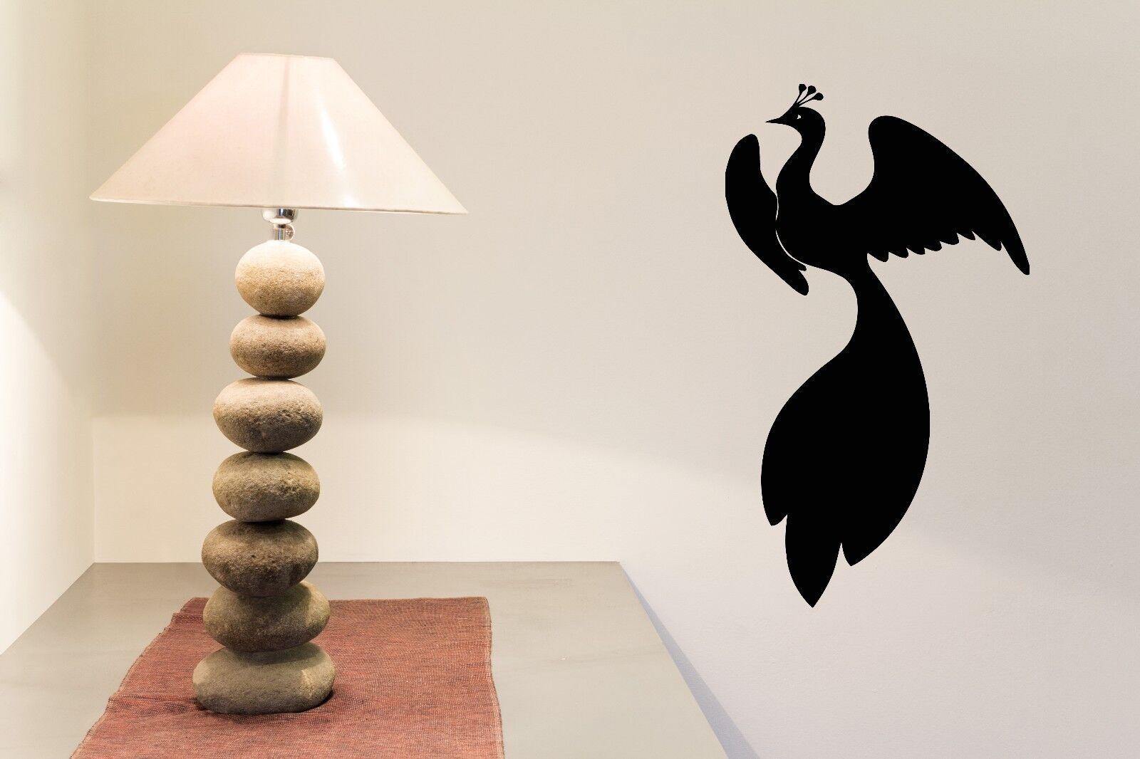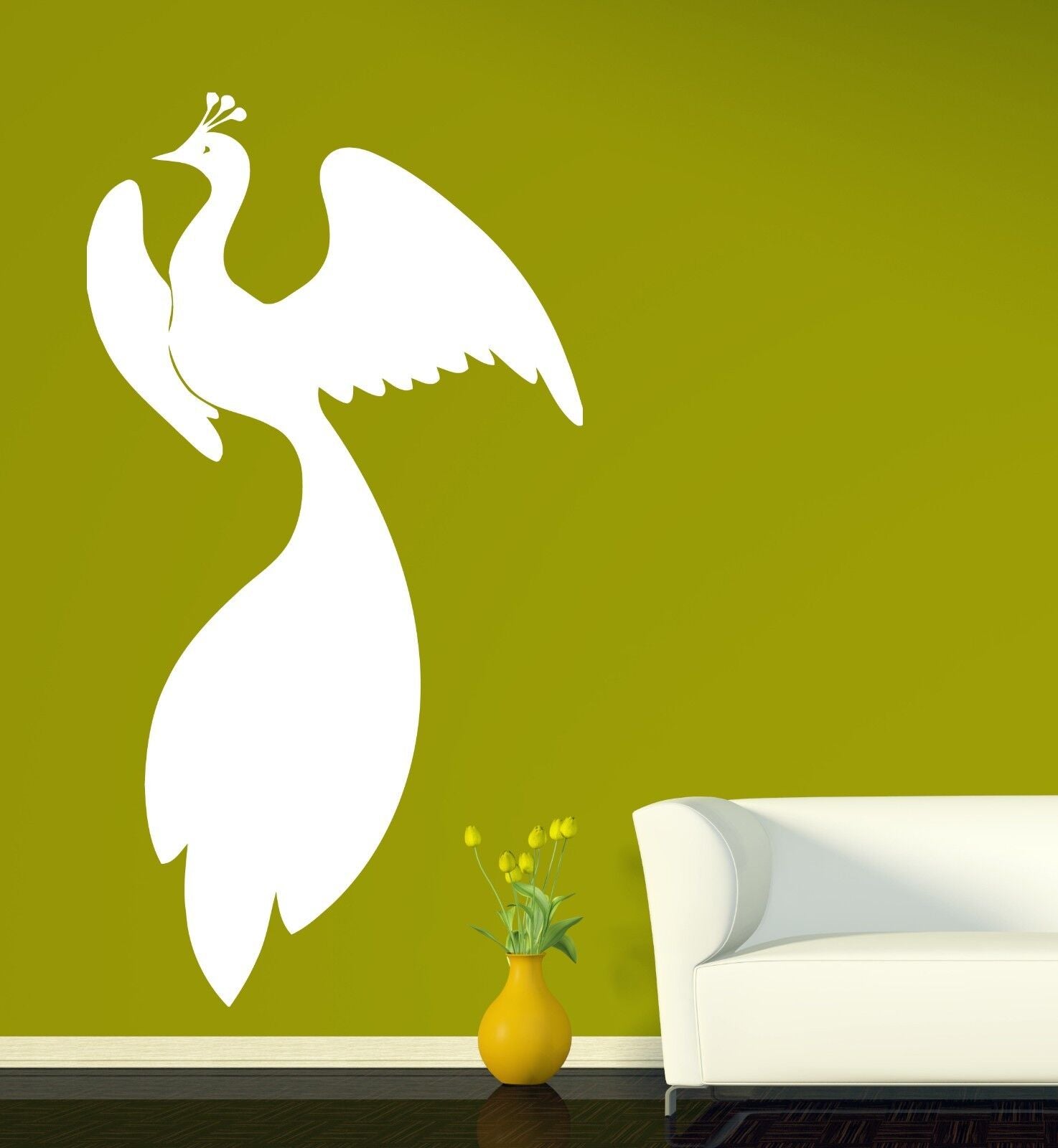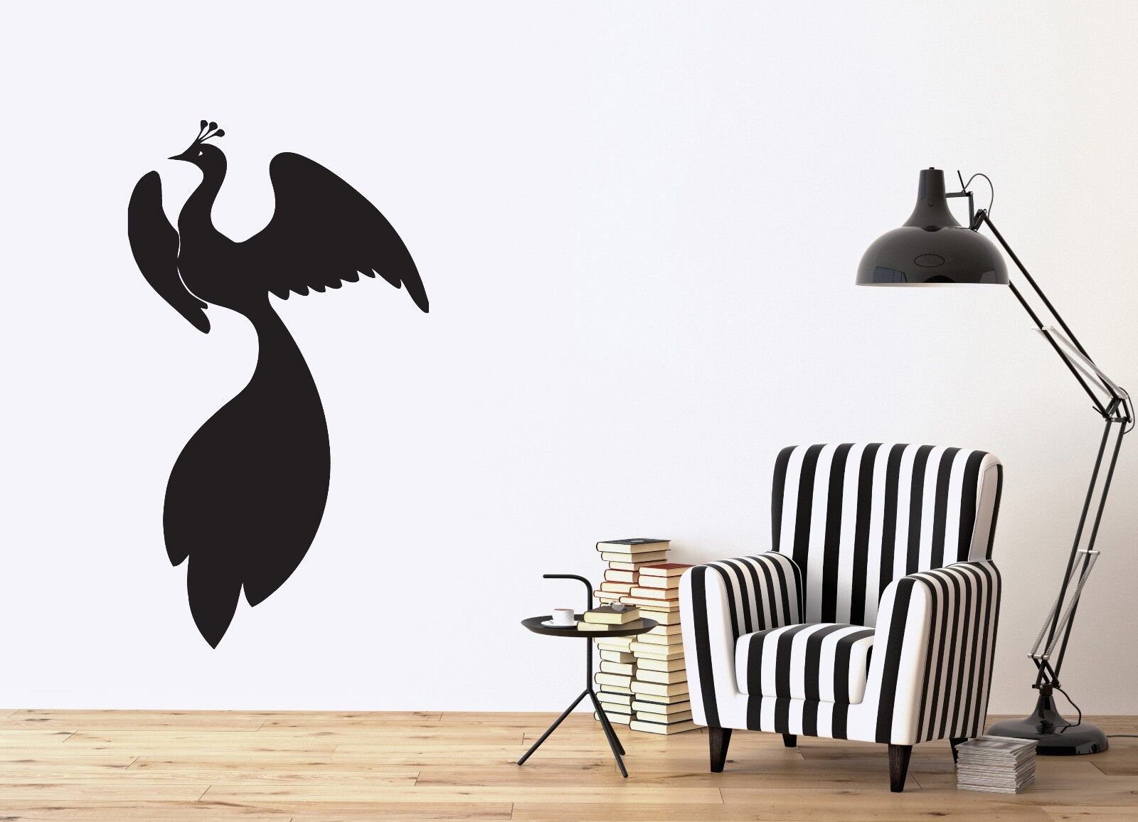 Autocollant mural en vinyle, oiseau magique, conte de fées, ailes d'oiseau, queue habillée (n350)