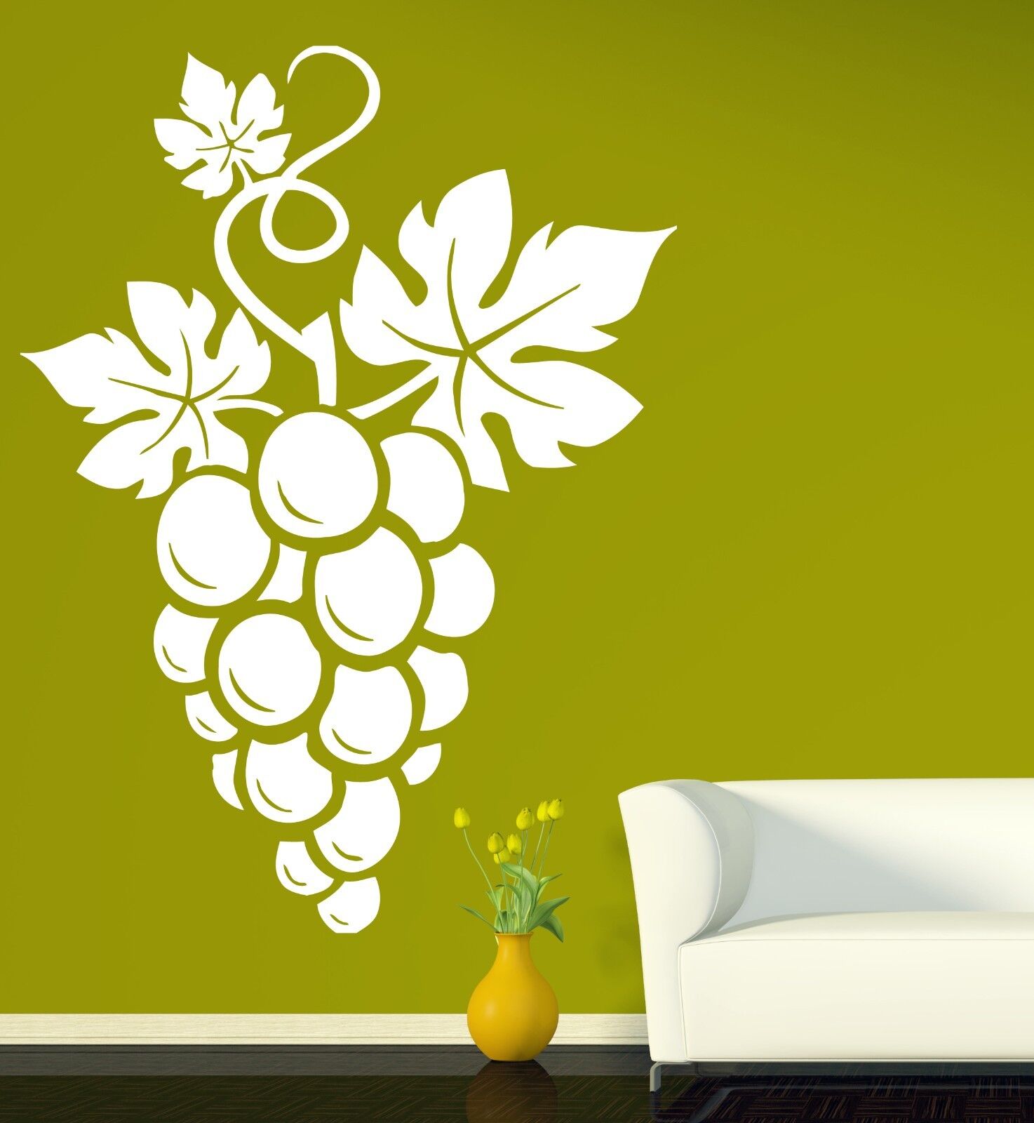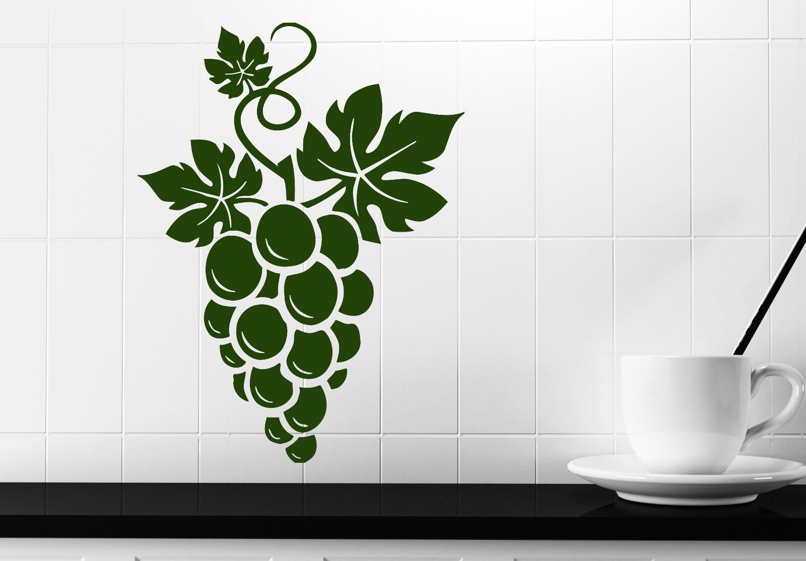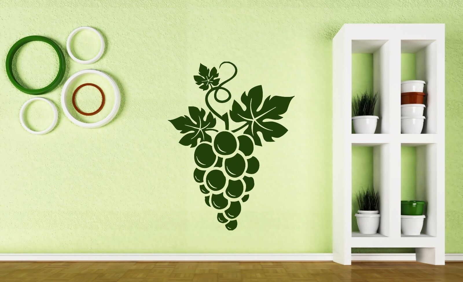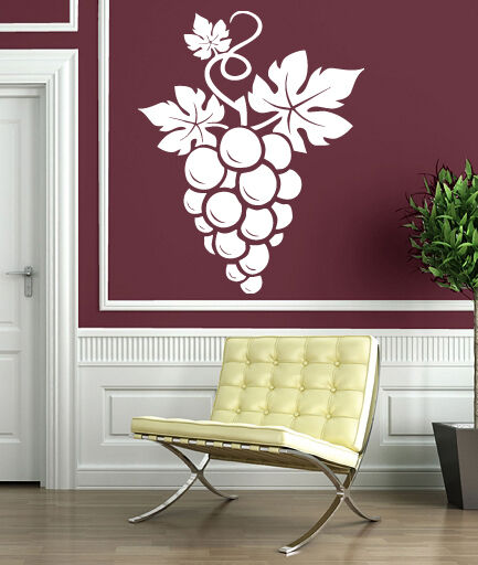 Autocollant mural en vinyle, grappe de raisin, baies, grandes feuilles sculptées (n416)