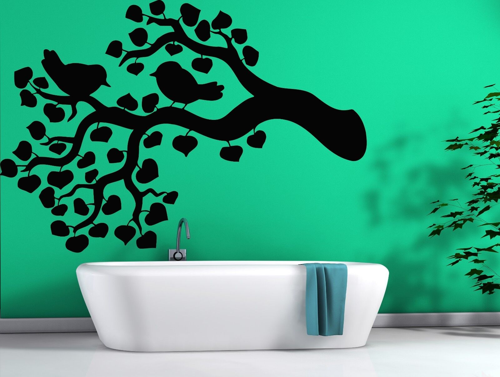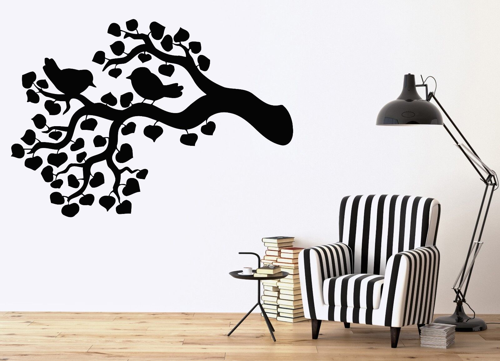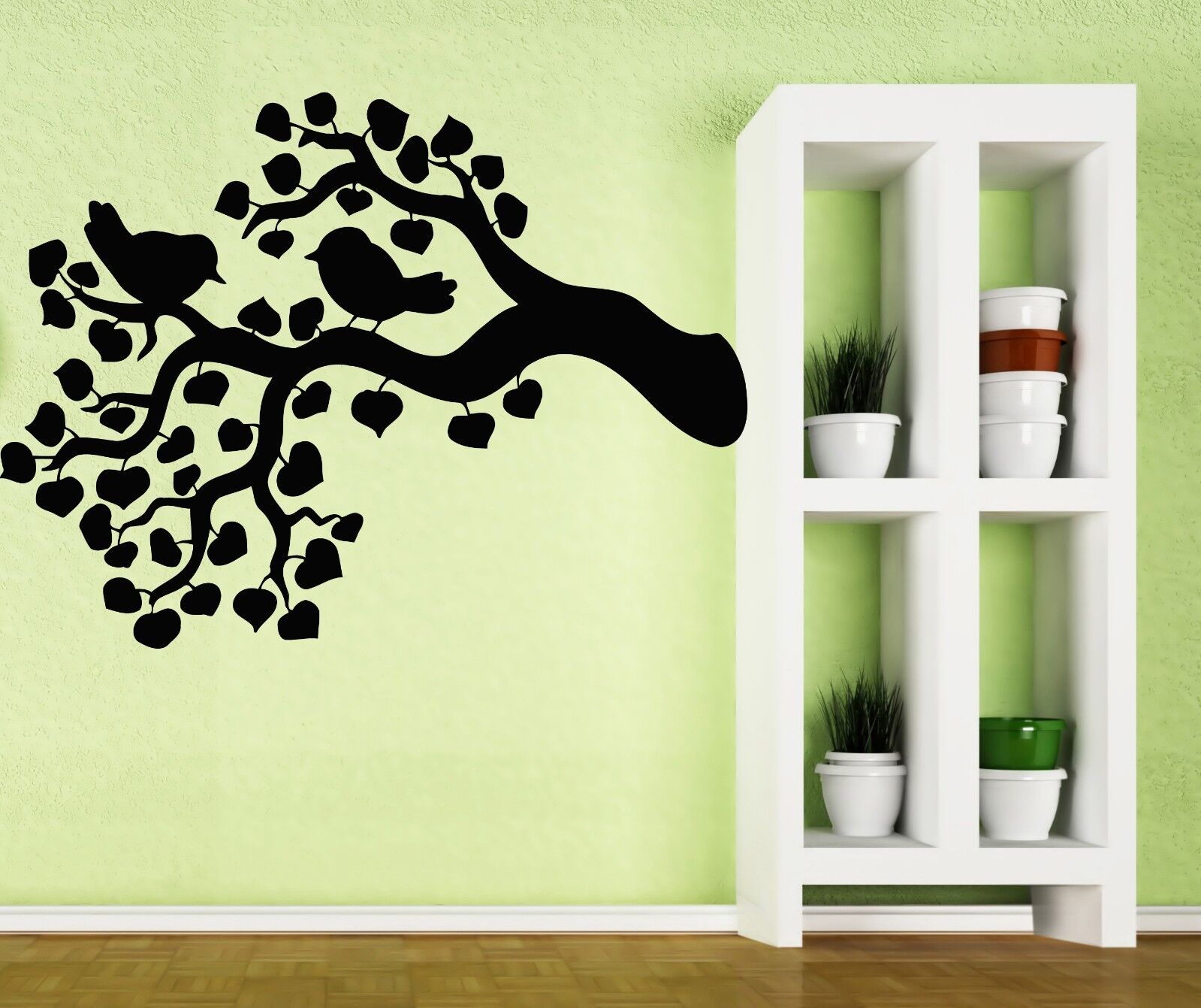 Autocollant mural en vinyle, décor de branche d'oiseaux gazouillants, bruissement de feuillage (n106)