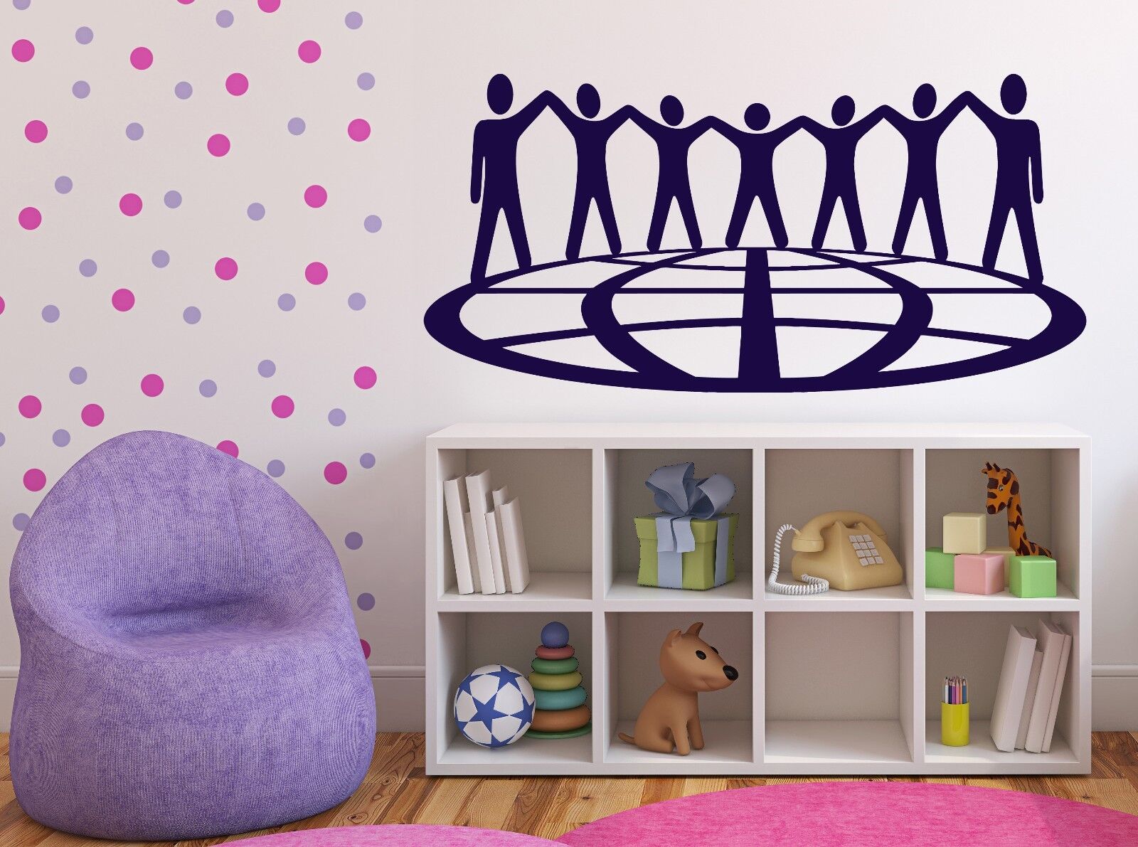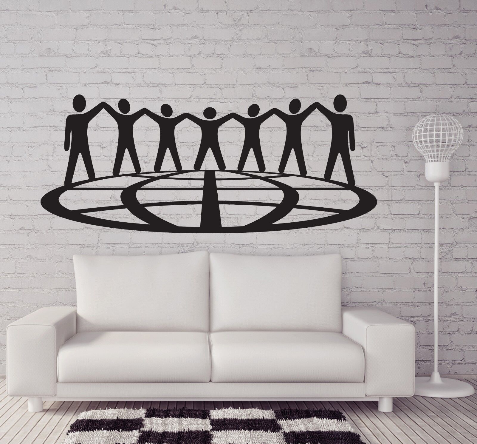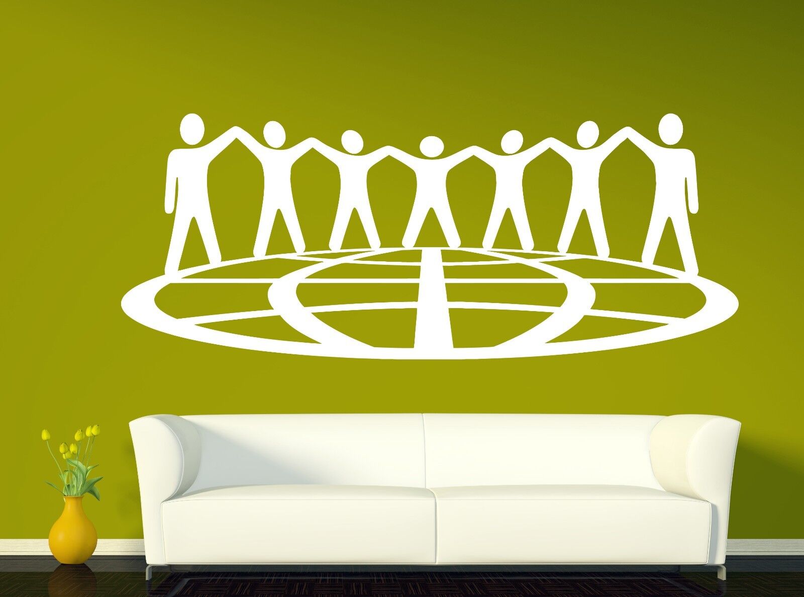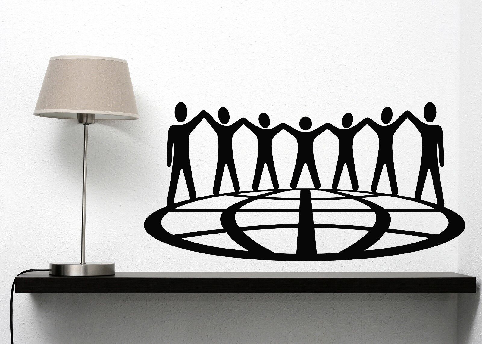 Autocollant mural en vinyle, amitié, nations, globe de paix, main dans la main (n048)