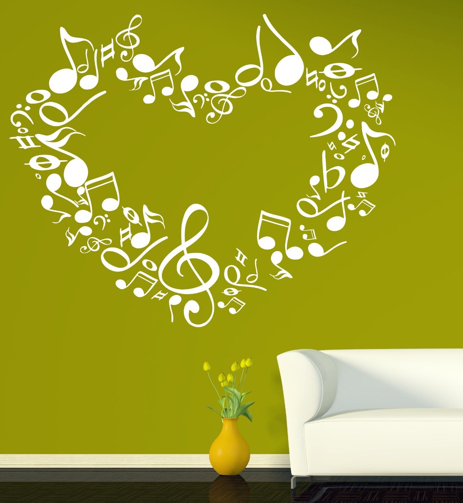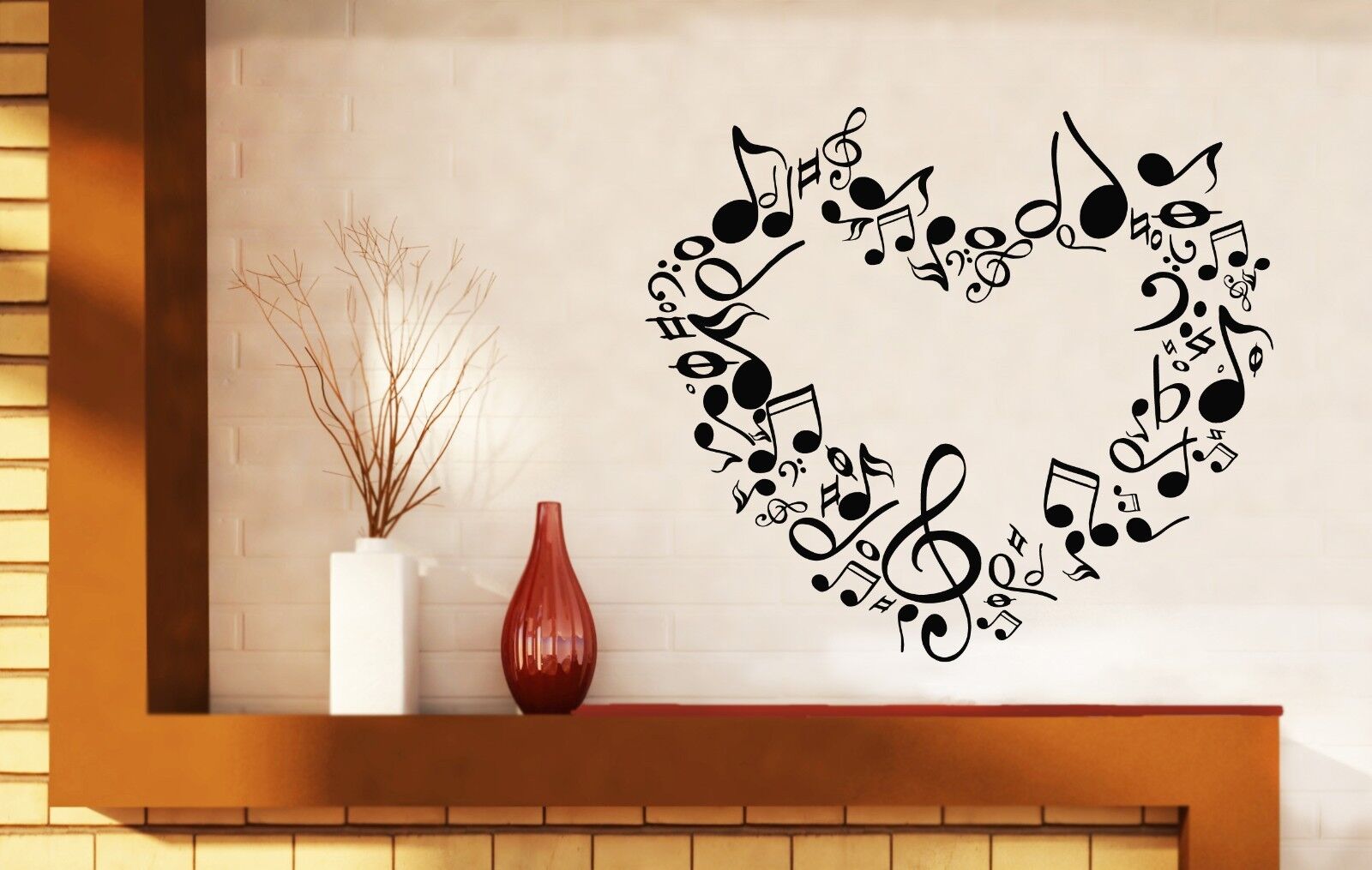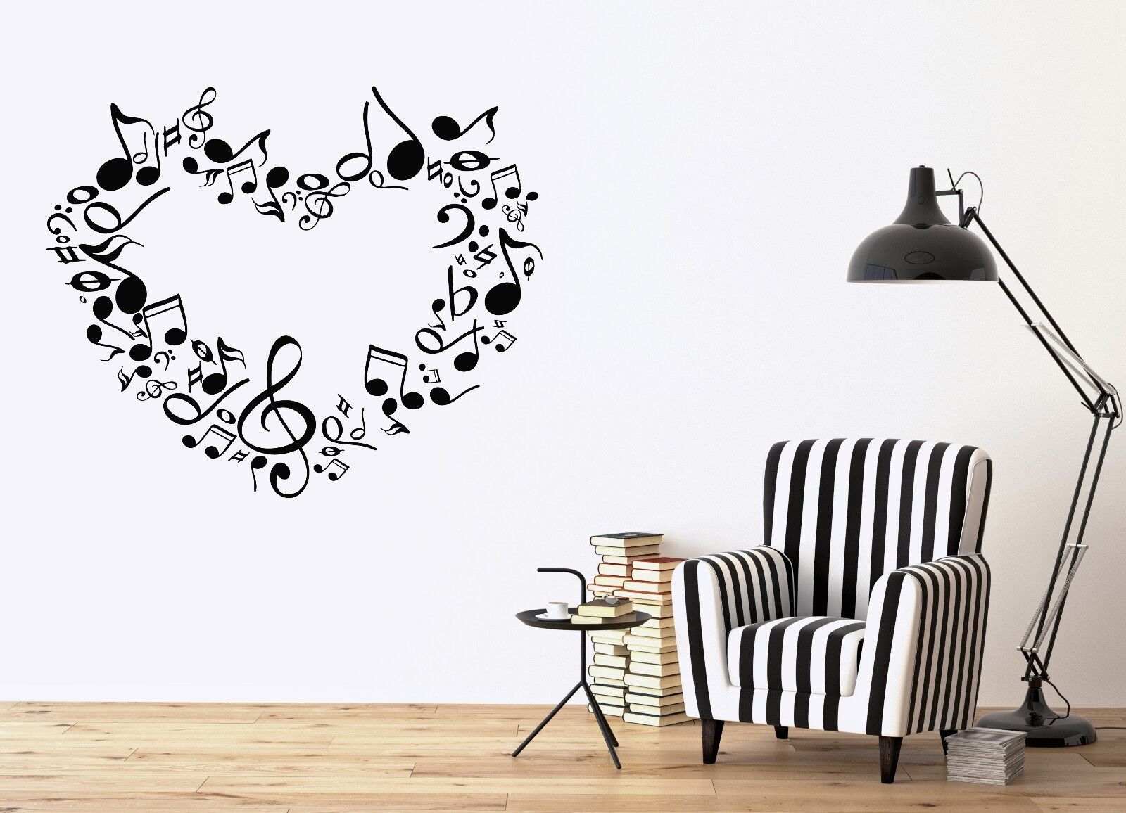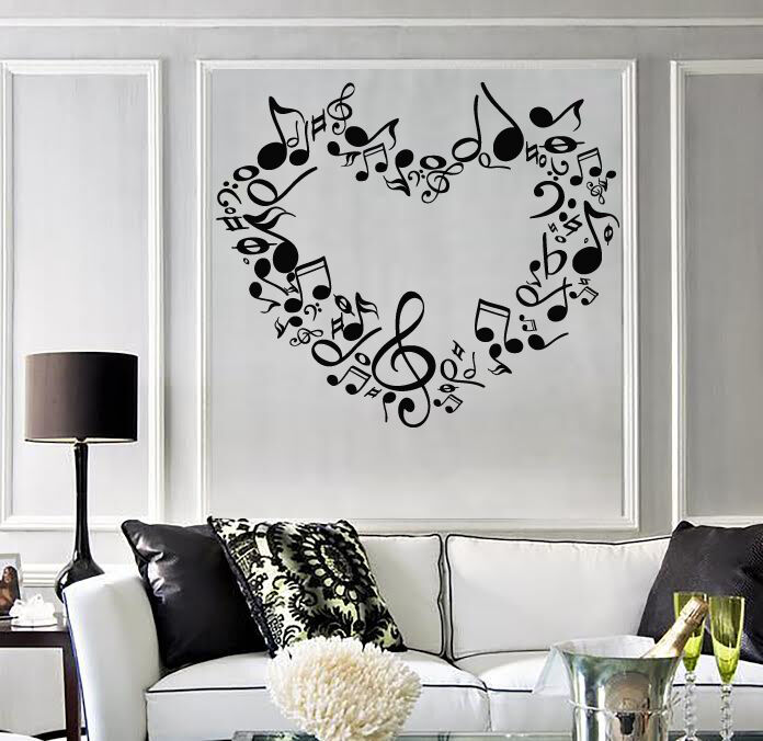 Autocollant mural en vinyle, notes de cœur d'amour, signes de musique symphonique (n518)