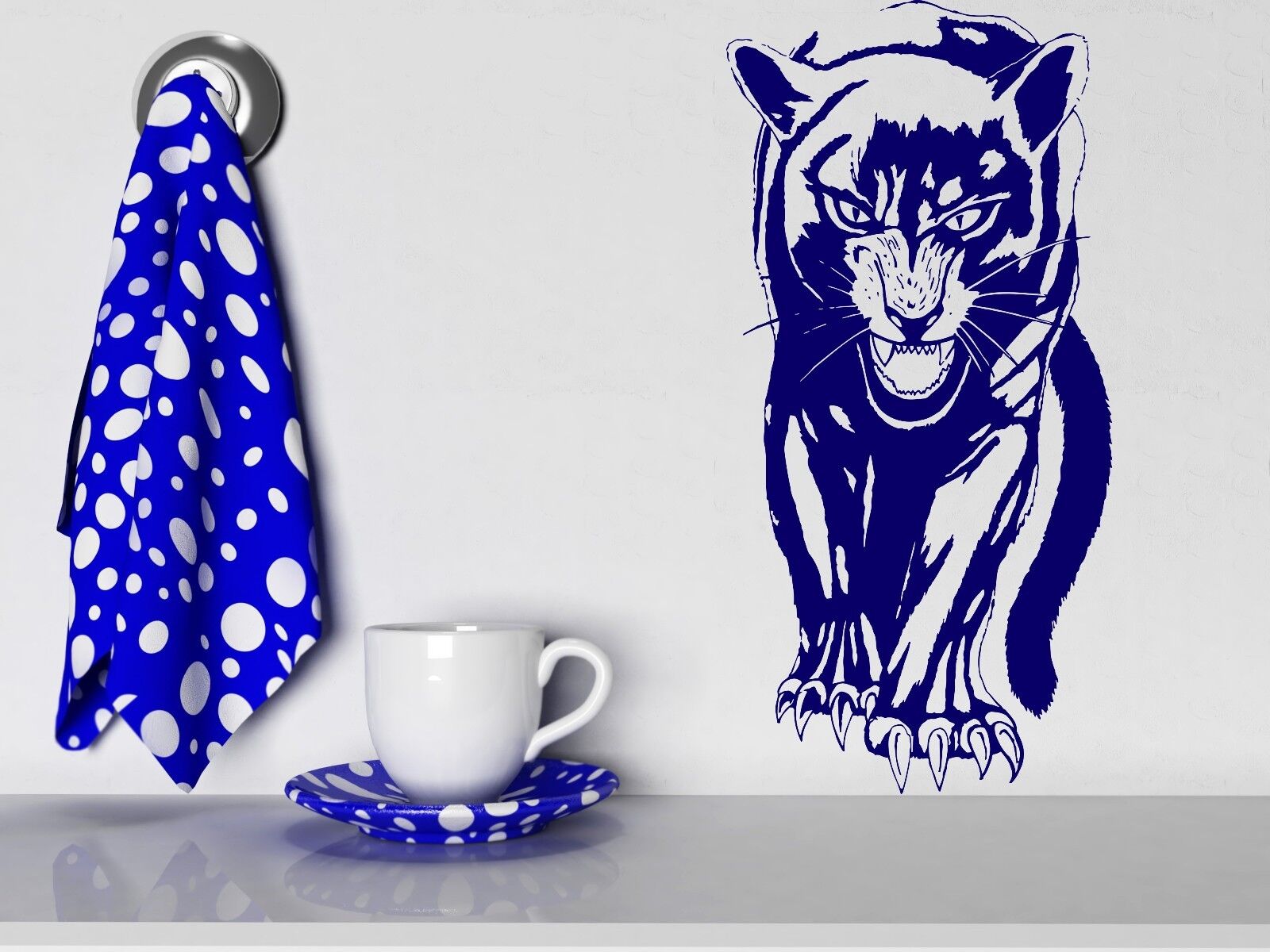 Autocollant mural en vinyle, panthère rugissant, chasseur de Jungle, grand chat, décor Animal (m313)