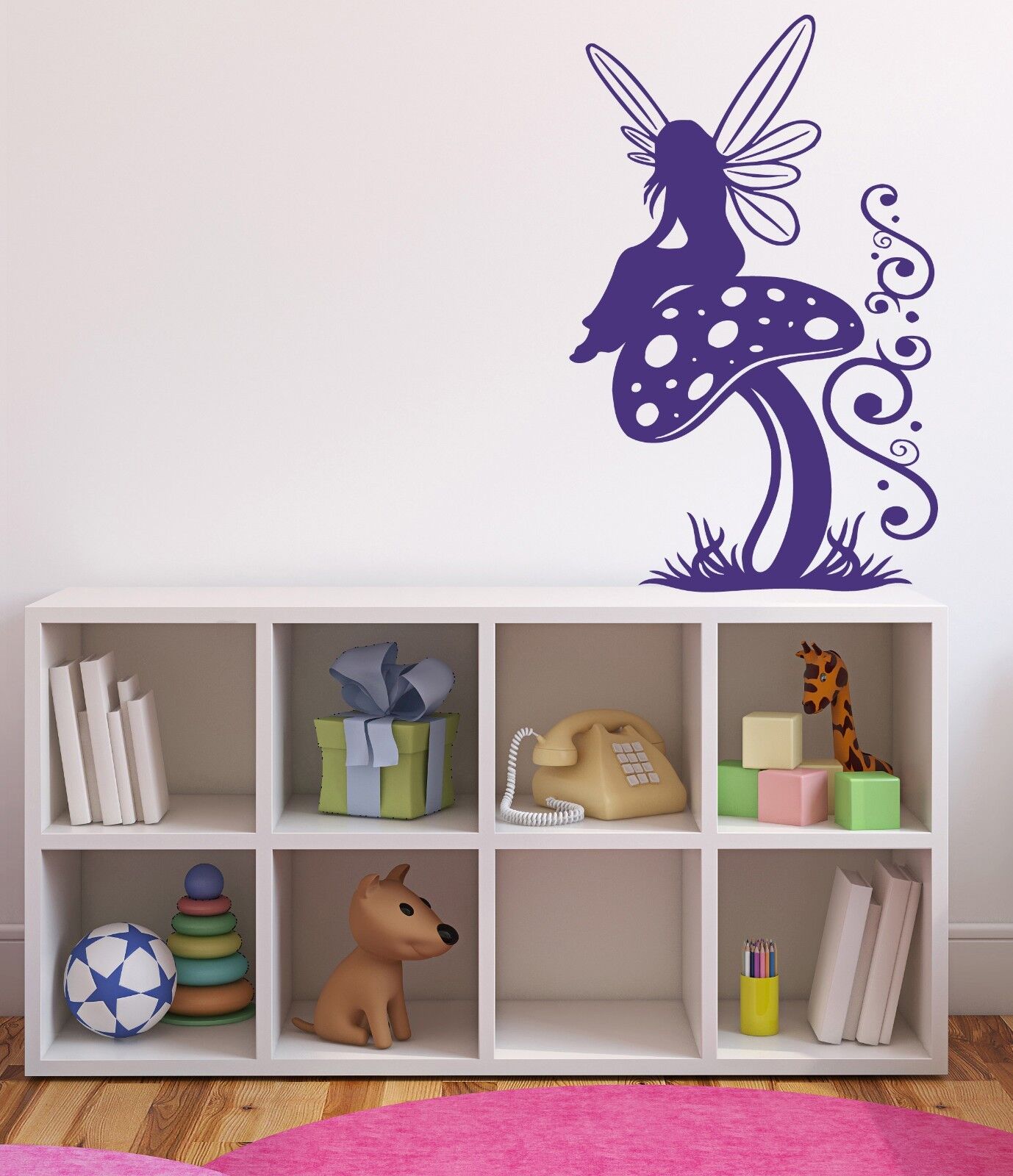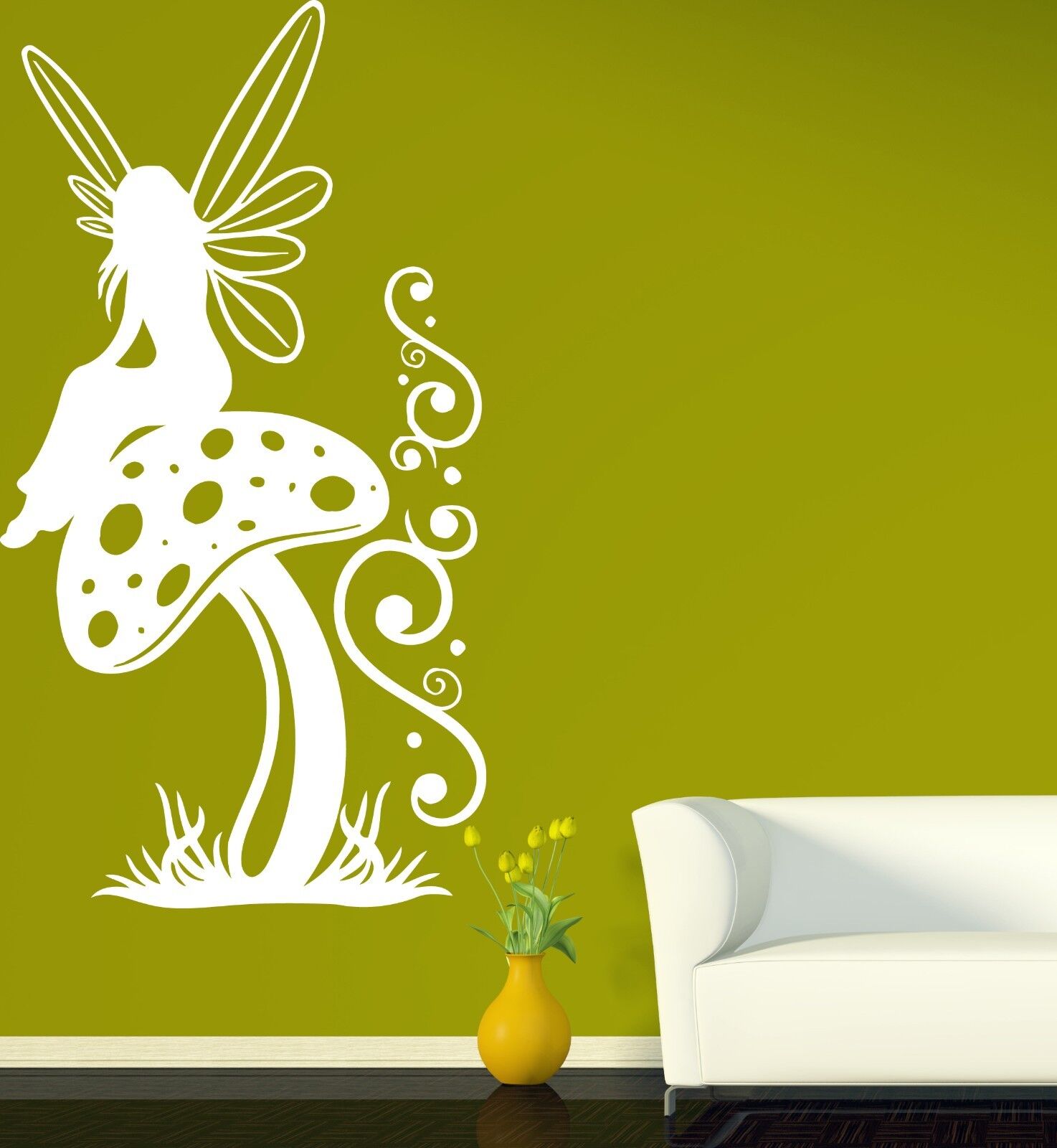 Autocollants muraux charmante petite fée mouche agaric herbe vinyle autocollant (n319)
