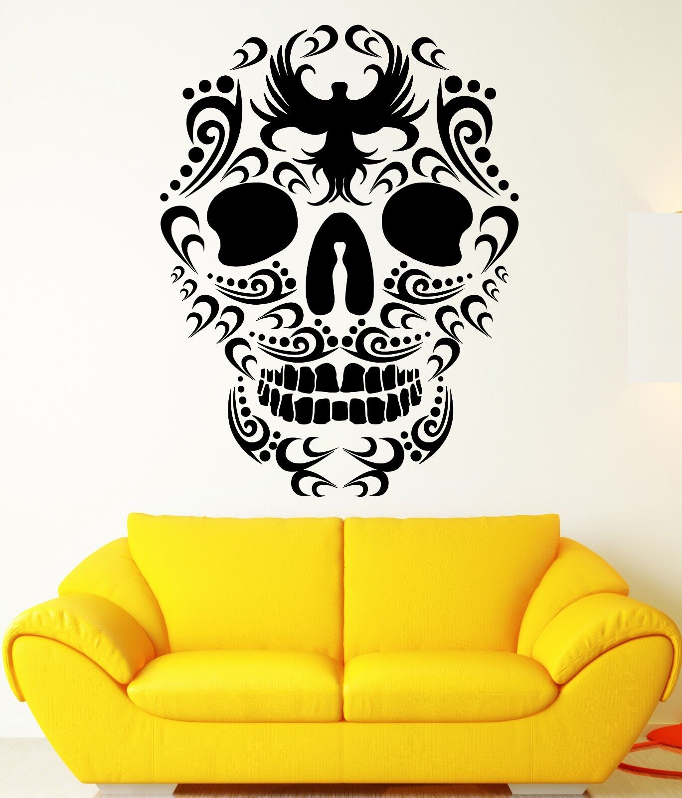 Autocollants muraux en vinyle, motifs d'oiseaux, crâne de mort, Art Mural (ig1978)