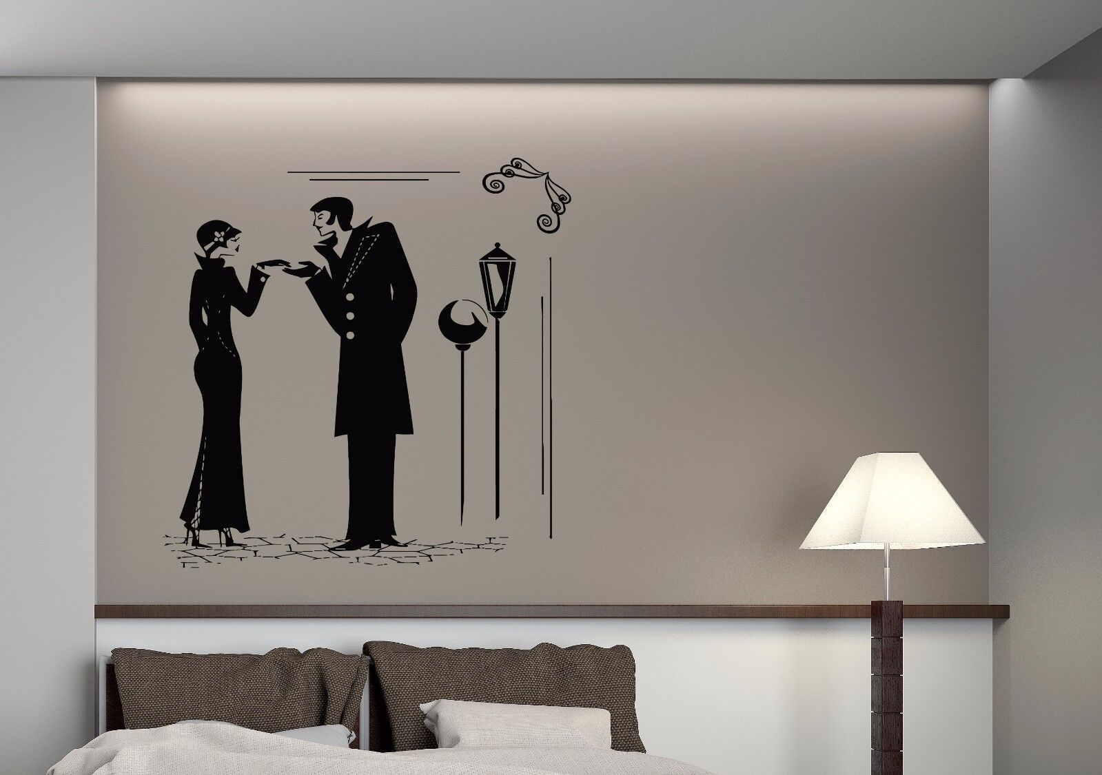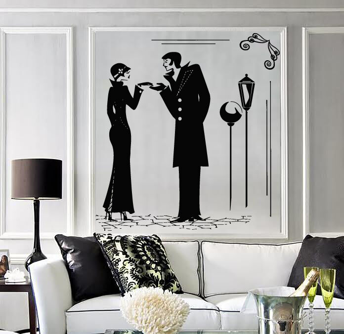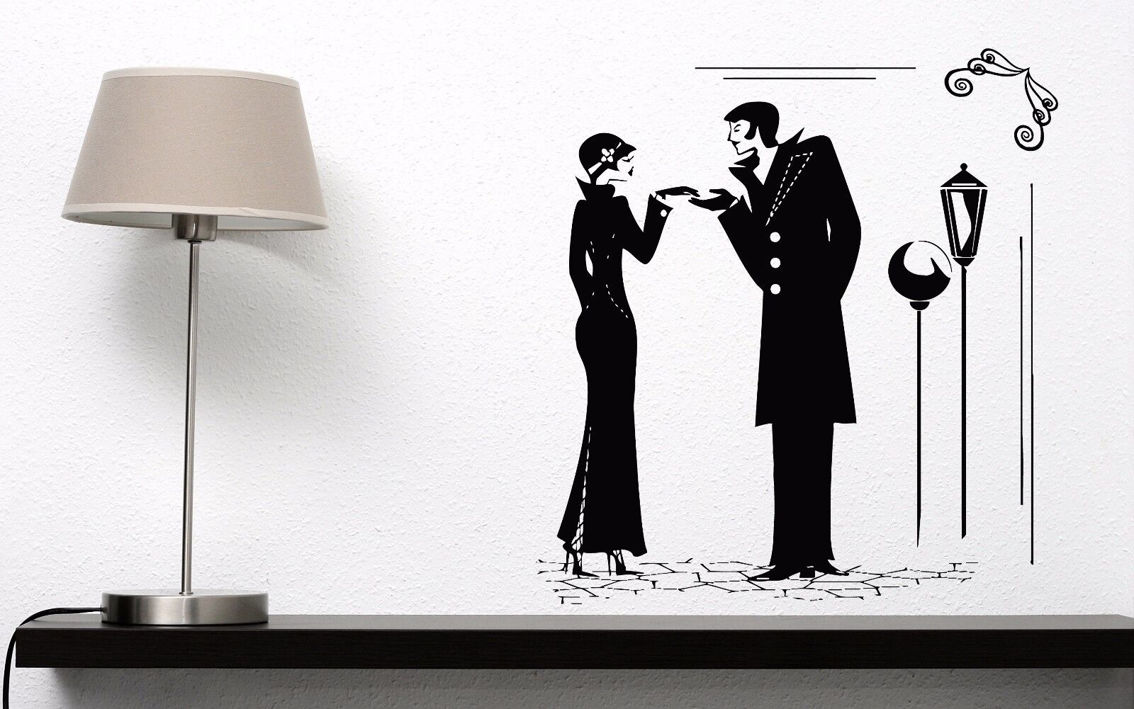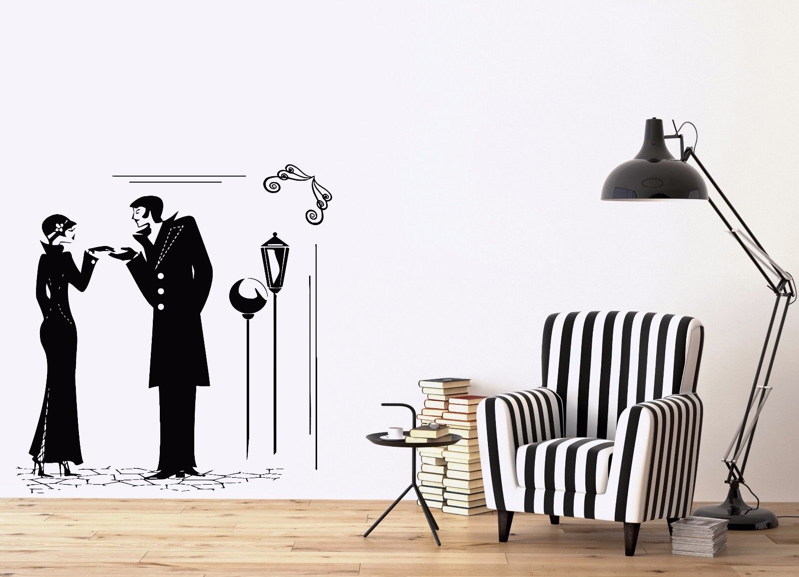 Autocollants muraux en vinyle, paysage rétro, couple romantique amoureux (n534)
