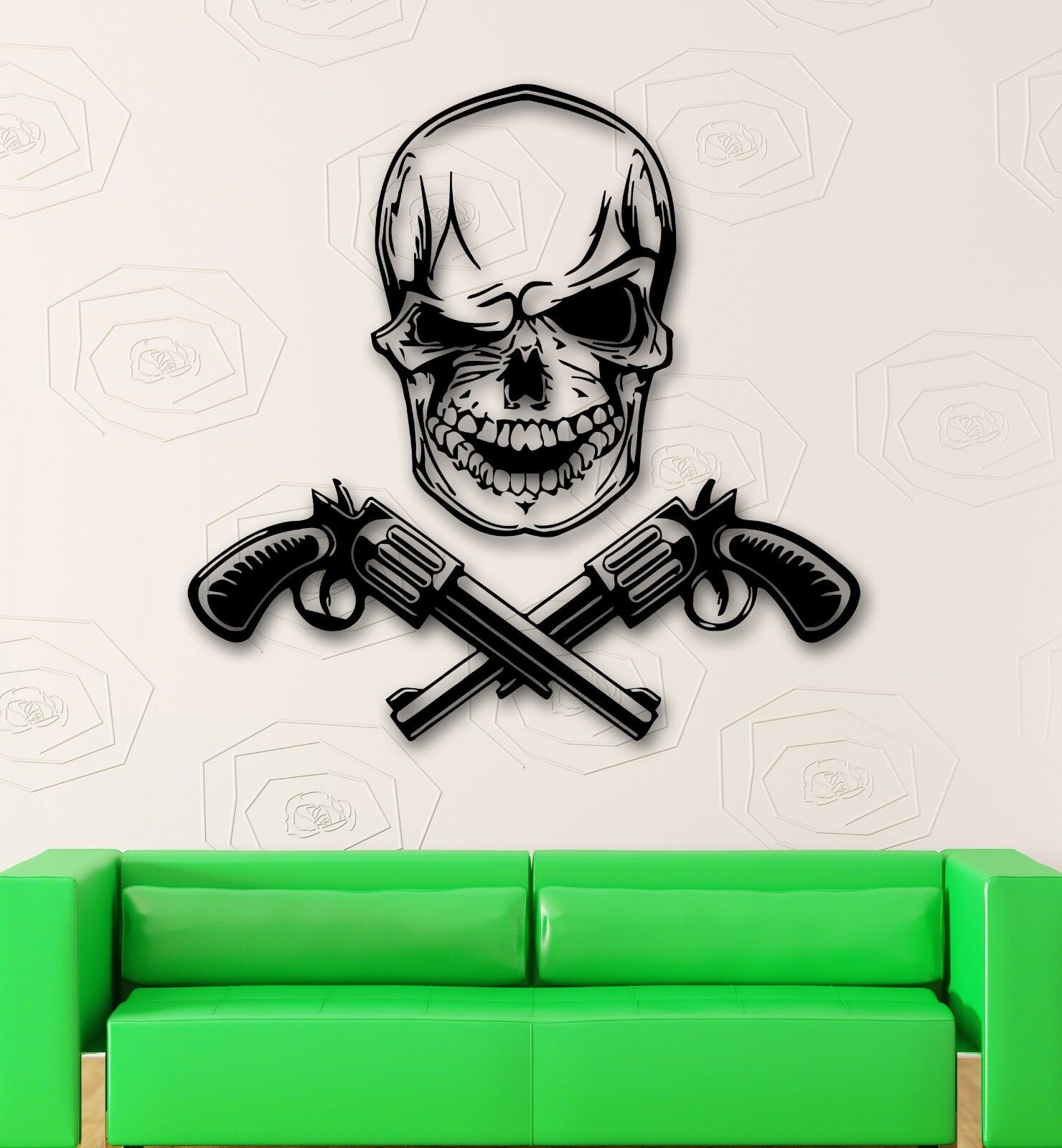 Autocollants muraux en vinyle, autocollant, Revolver, pistolet, crâne, Dead Mafia (ig492)
