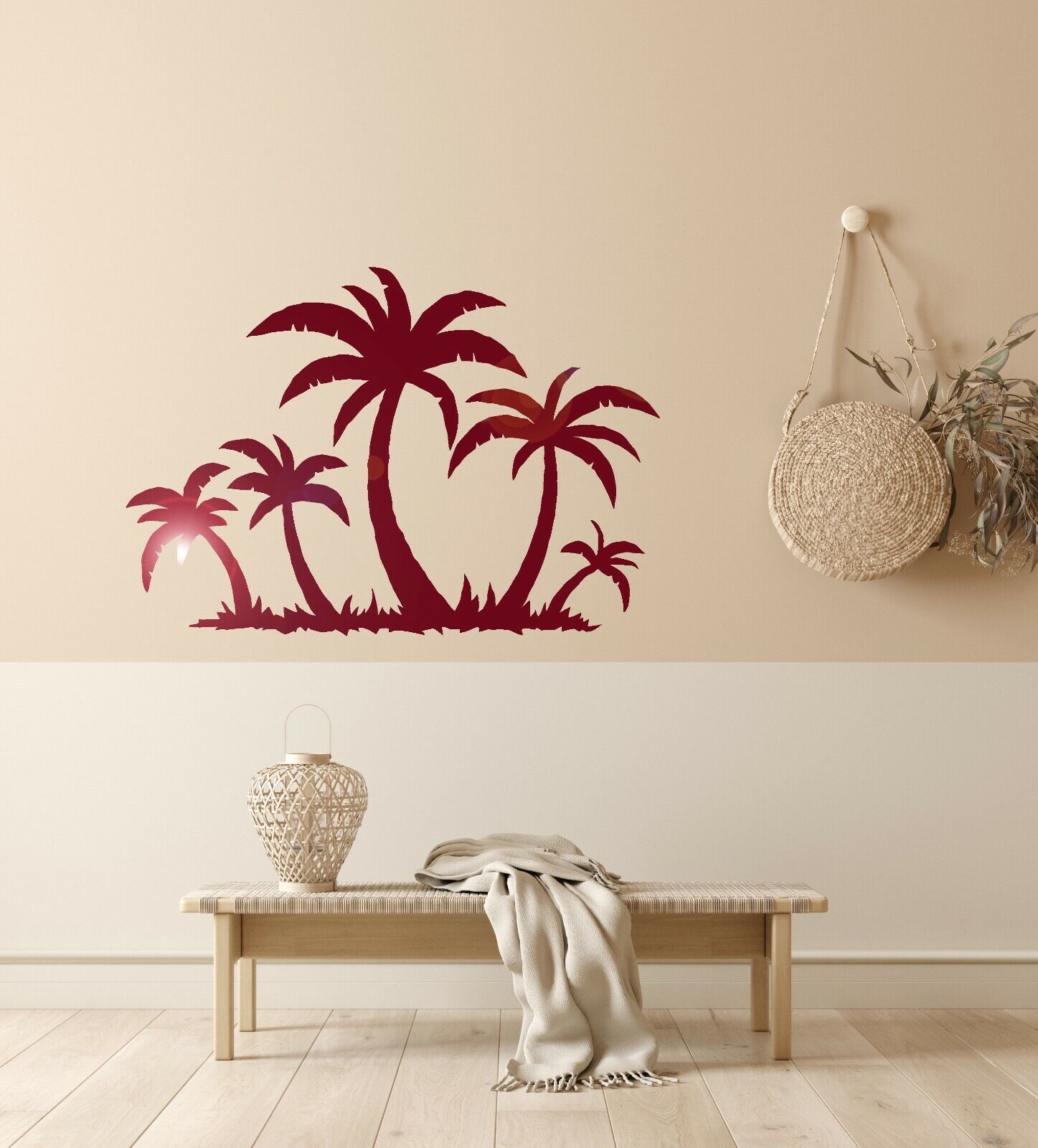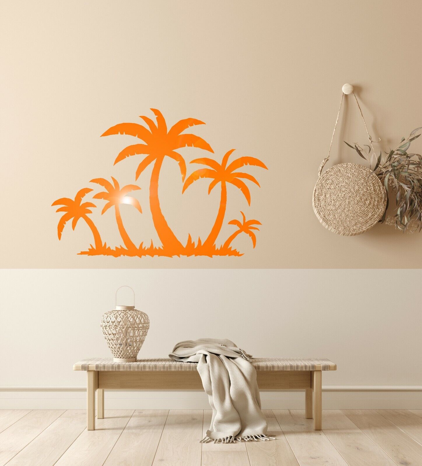 Autocollants muraux en vinyle avec palmiers tropicaux et plage, décor relaxant (ig1769)