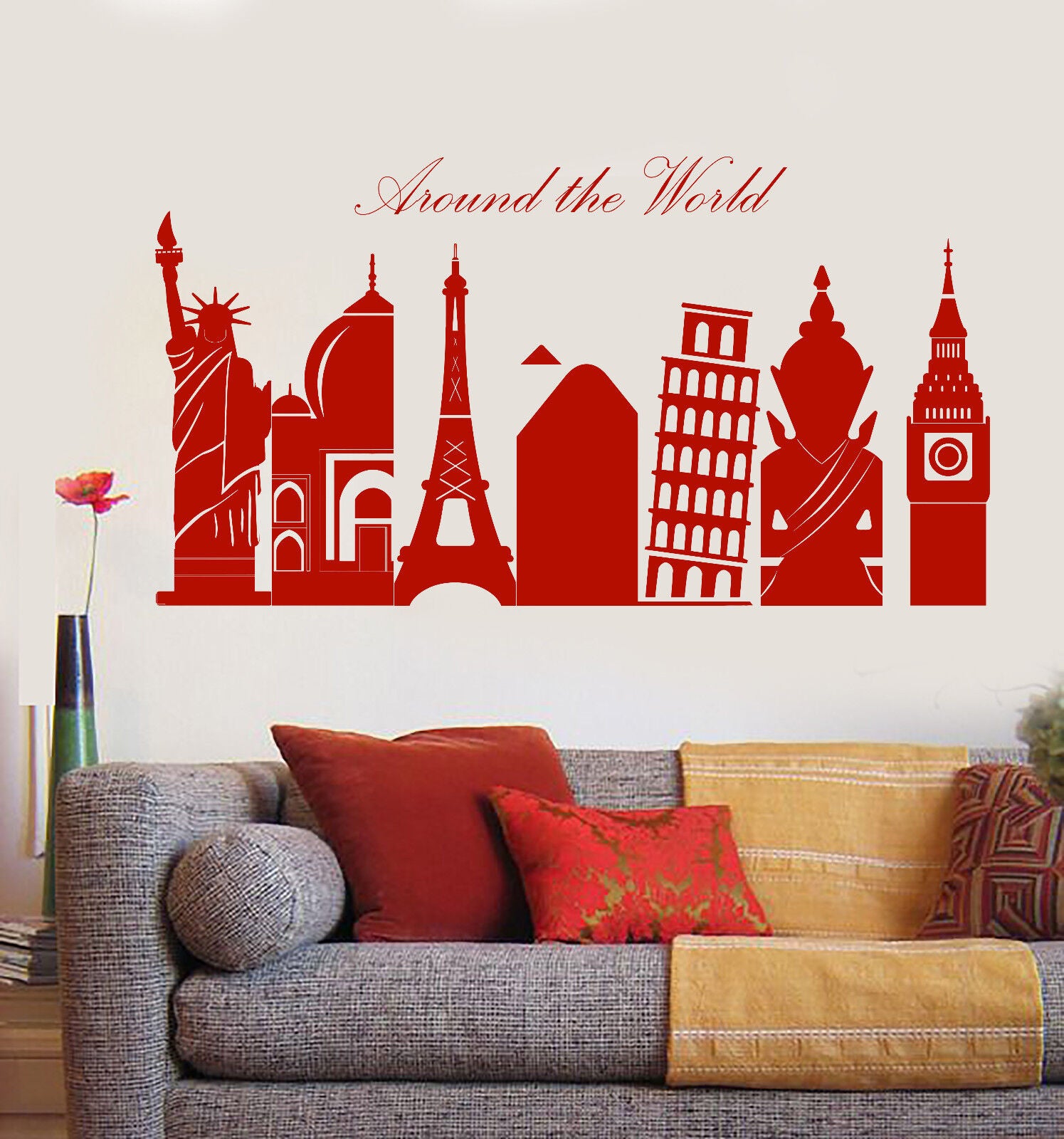 Autocollant mural en vinyle autour des merveilles du monde, symbole des villes (n968)