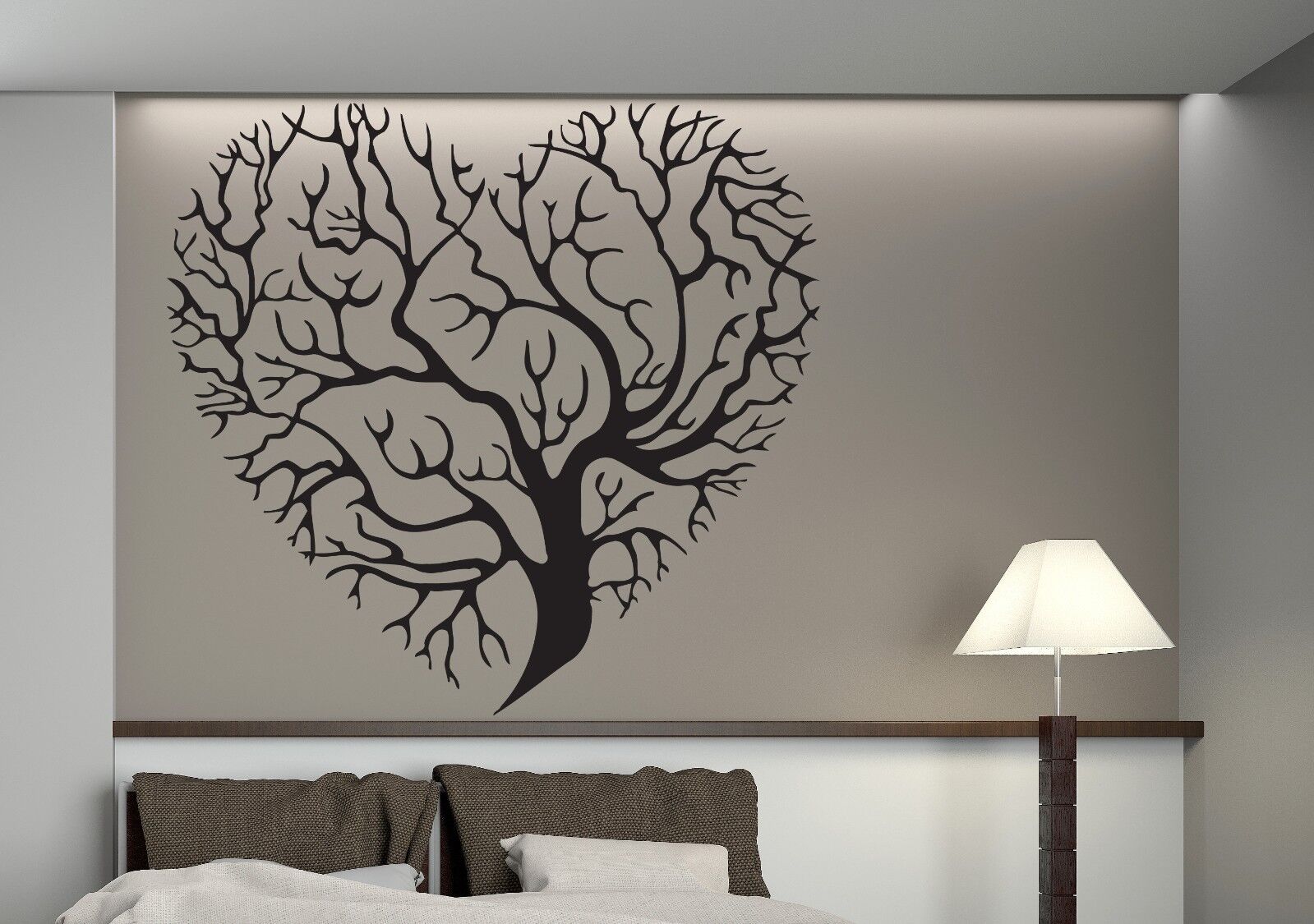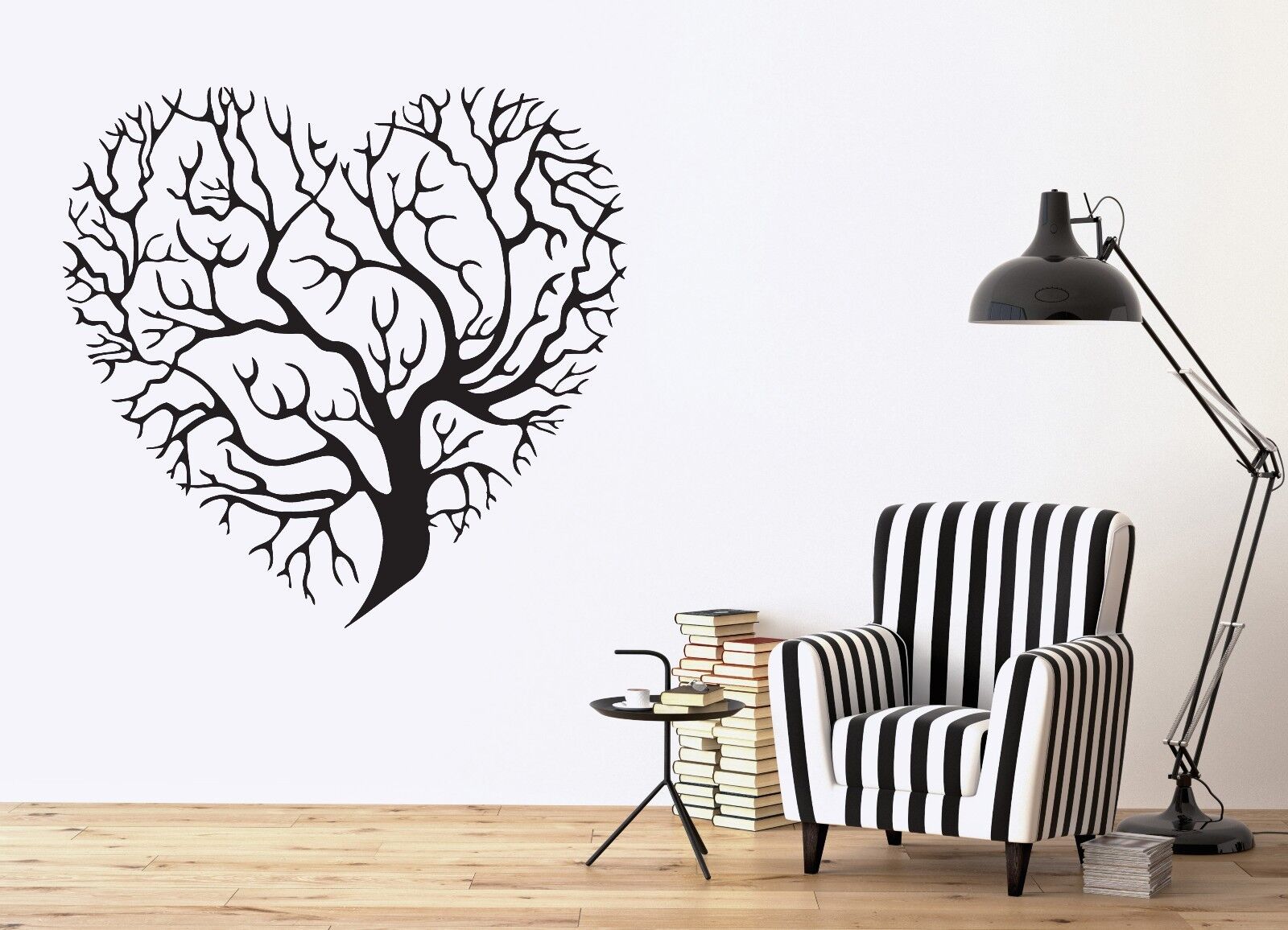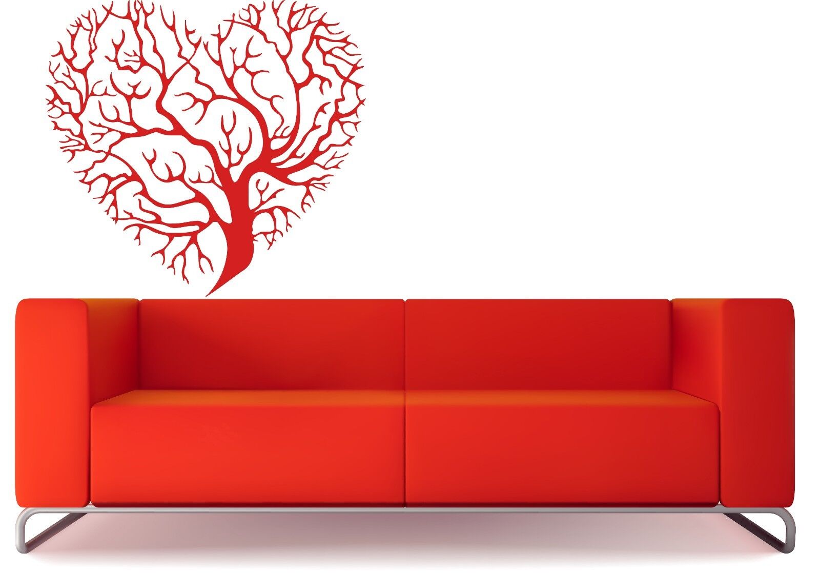 Autocollant mural en vinyle, décor, Image abstraite, branche d'arbre en forme de cœur (n184)