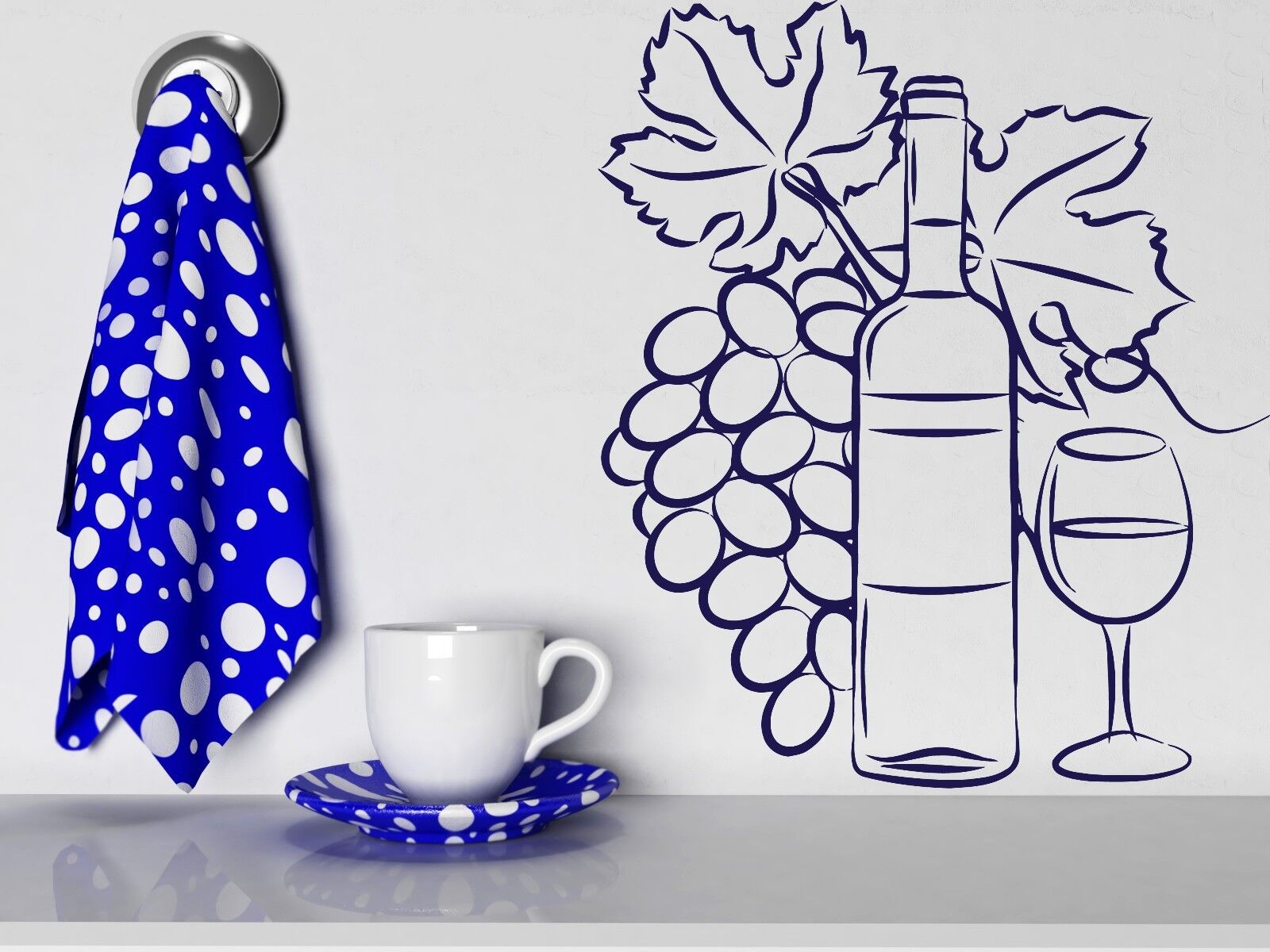 Autocollant mural en vinyle, décor de bouteille de verre de vin, grappe de raisin (n179)