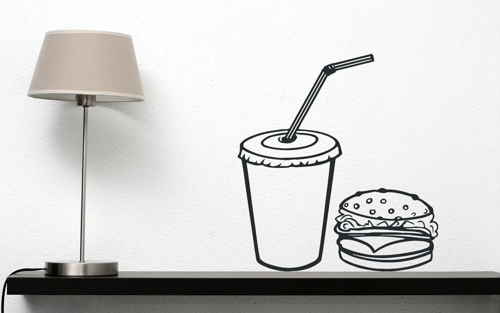 Autocollant mural en vinyle Fast Food Rapid Delicious Cola Hamburger Cutlet (n456)