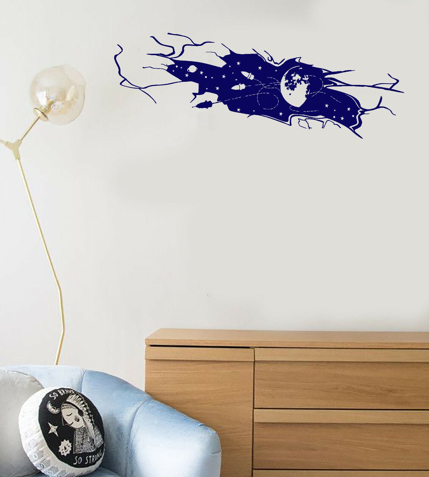 Vinyl Wall Decal Space Rocket Planet Earth Wall Crack Stickers (3949ig)