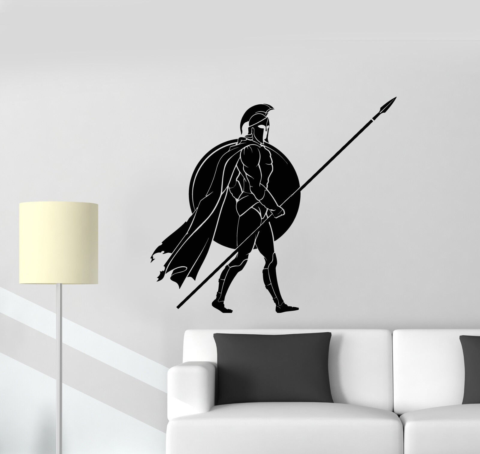 Vinyl Wall Decal Spartan Warrior With Spear Helmet Sparta Stickers (3097ig)