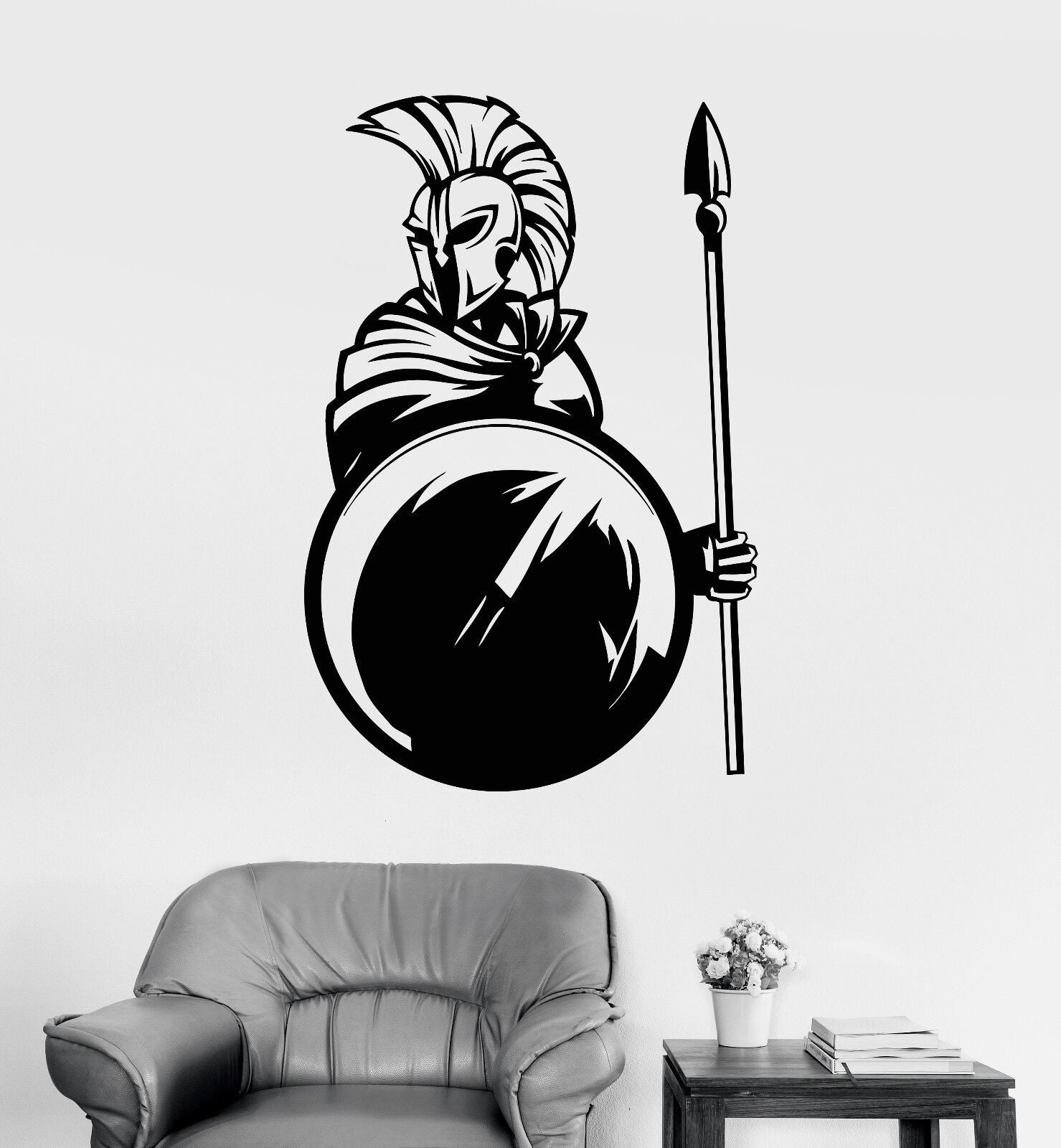 Vinyl Wall Decal Spartan Warrior With Spear Shield Helmet Stickers (1380ig)