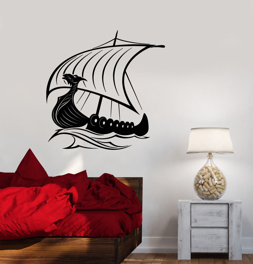 Vinyl Wall Decal Viking Ship Sailors Sea Waves Stickers (2390ig)