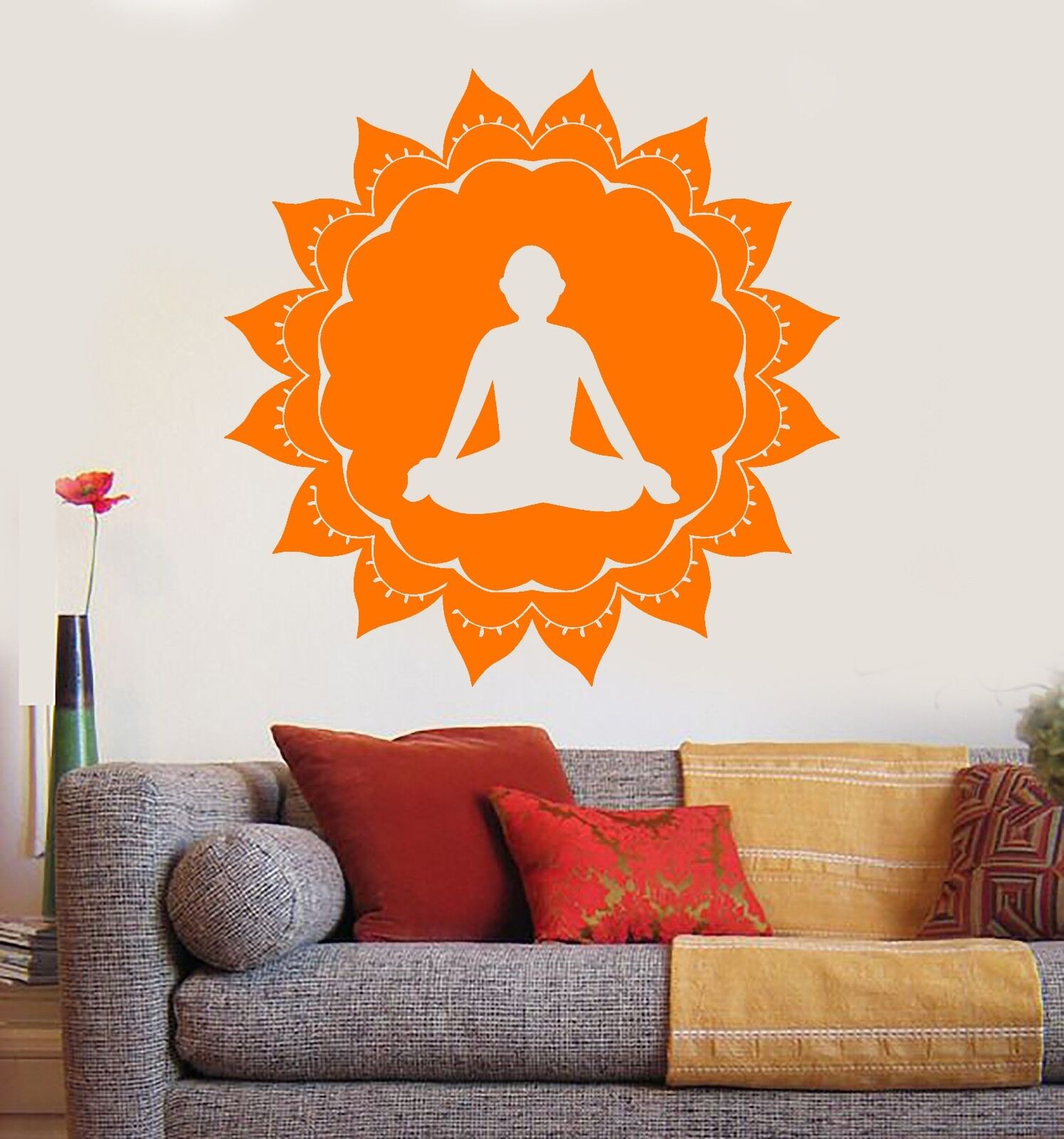 Vinyl Wall Decal Yoga Lotus Pose Meditation Circle Stickers (841ig)