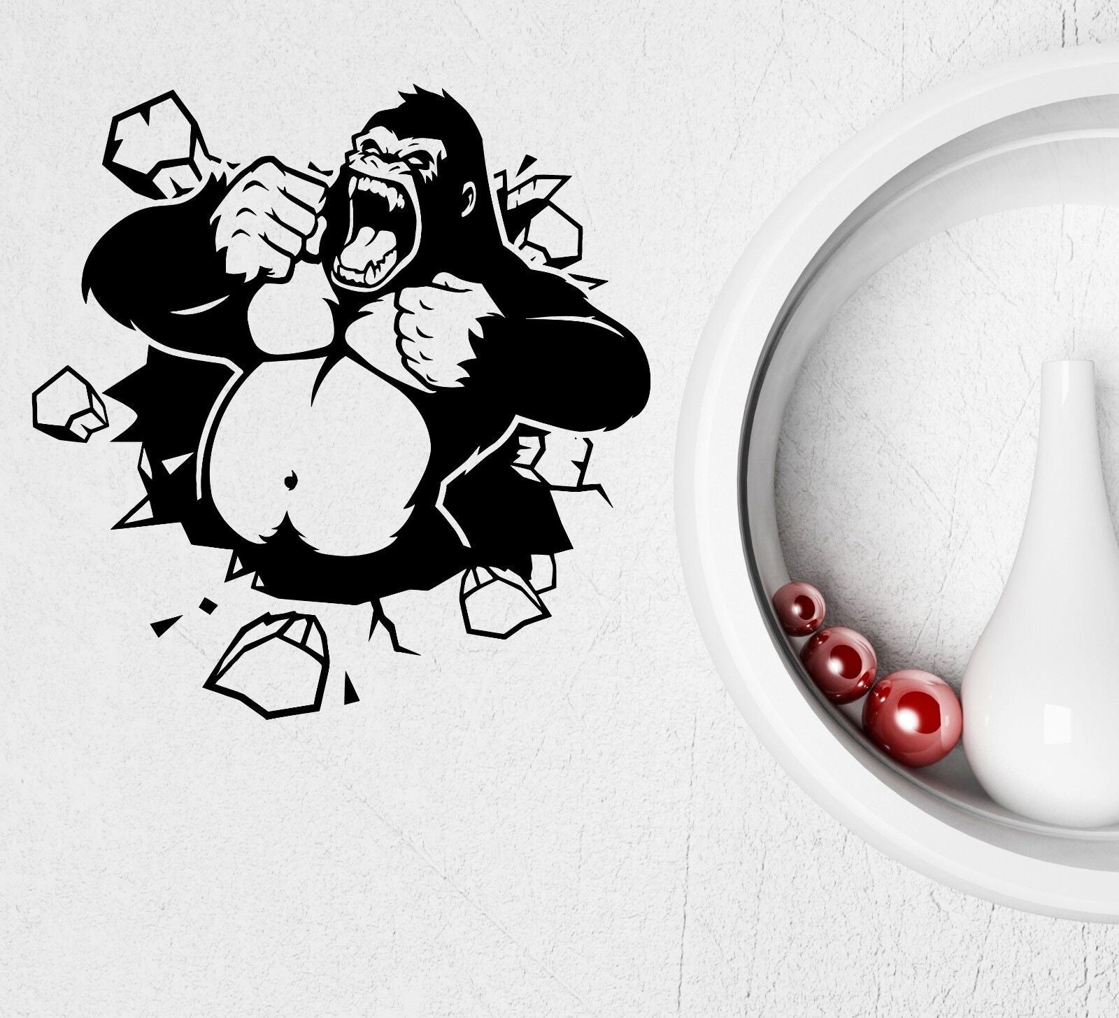 Wall Vinyl Sticker Decal Crack Monkey Kids Funny Animal Decor Decor (ig2042)