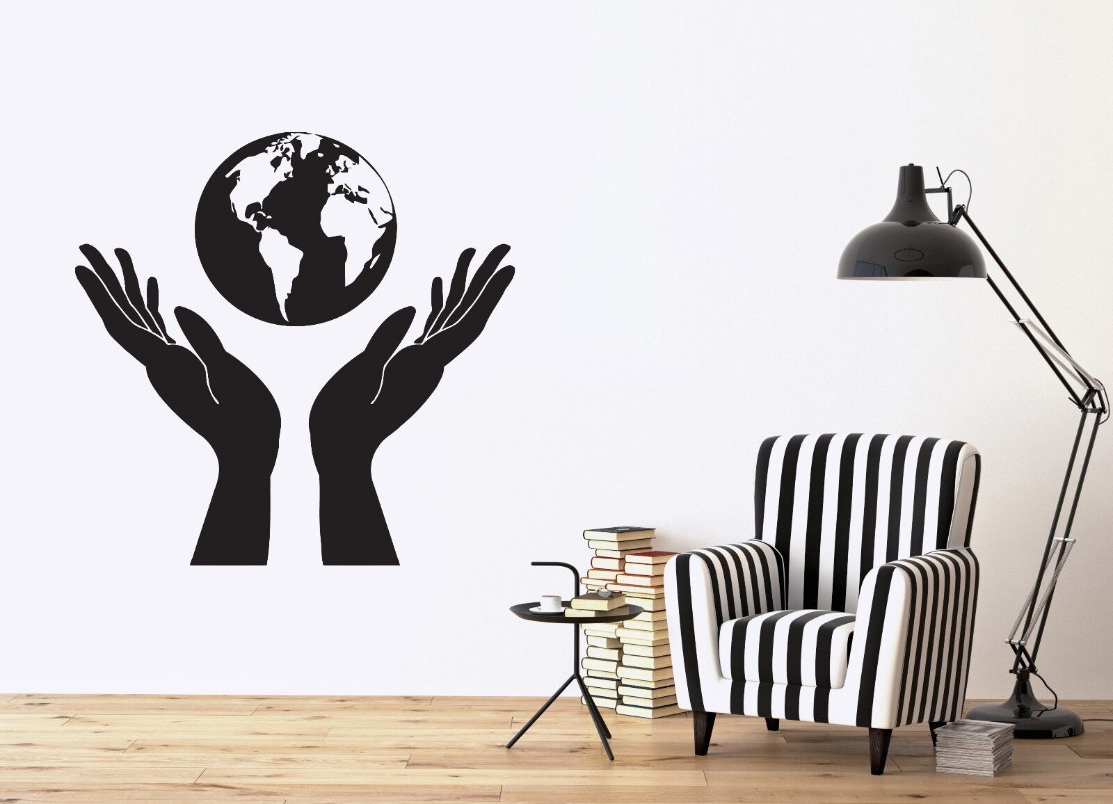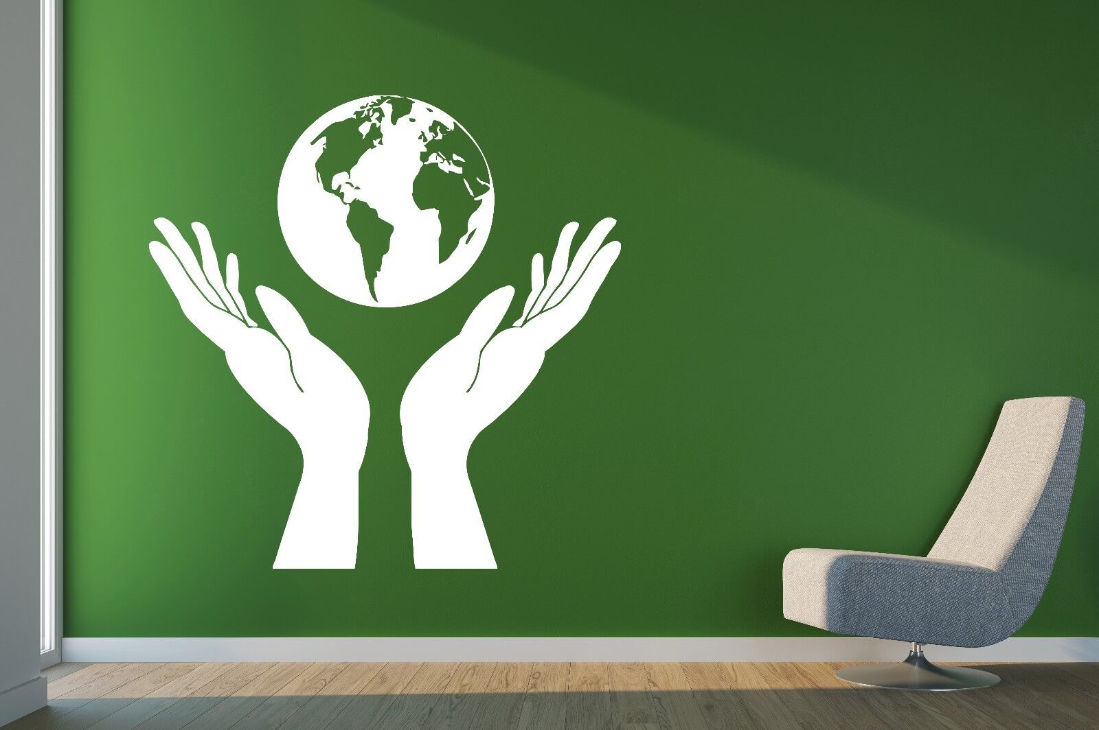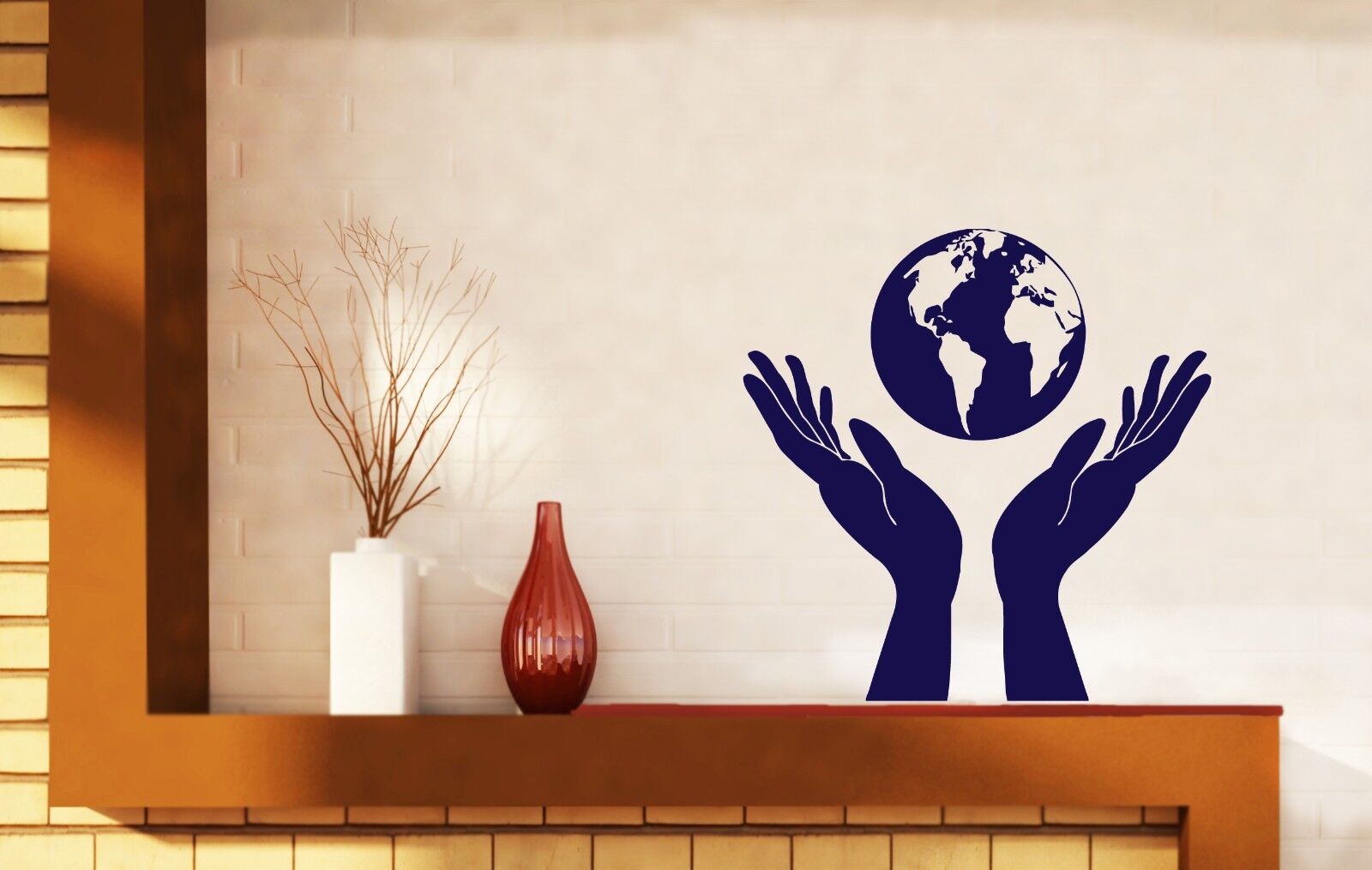 Wall Vinyl Sticker Decal Hands Holding a Globe People Protect Earth (n366)